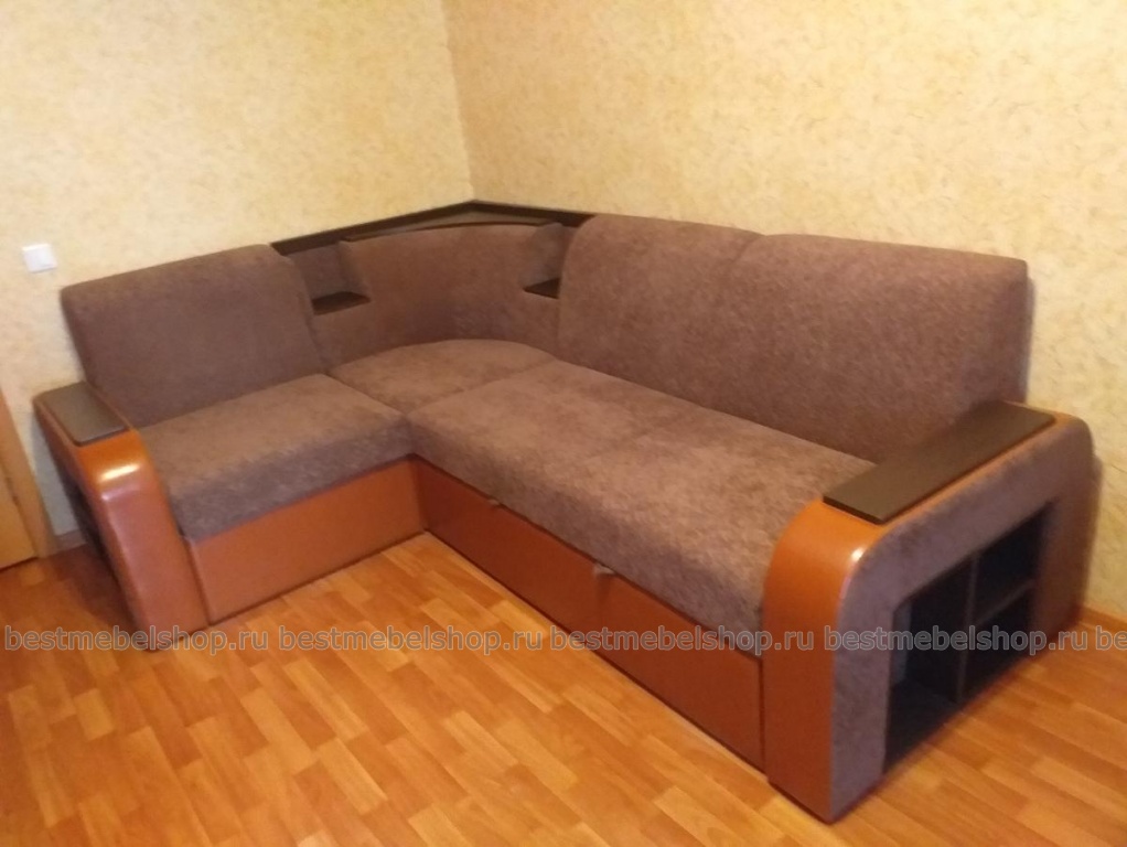 Угловой диван Эврика Комфорт полностью соответствует своему названию, так как на нем удивительно удобно сидеть, приятно принимать гостей, поставив на удобные полочки угловых секций или широкие подлокотники напитки и угощения. Диван оборудован механизмом трансформации "Дельфин". Поверхность спального места получается ровной и удобной для сна. Данный способ раскладки пригоден для каждодневного применения. Модель оснащена бельевым ящиком, в котором удобно хранить постельное белье. В подлокотниках имеются небольшие ниши, в которые можно поставить книги, положить очки, пульт от телевизора или телефон.