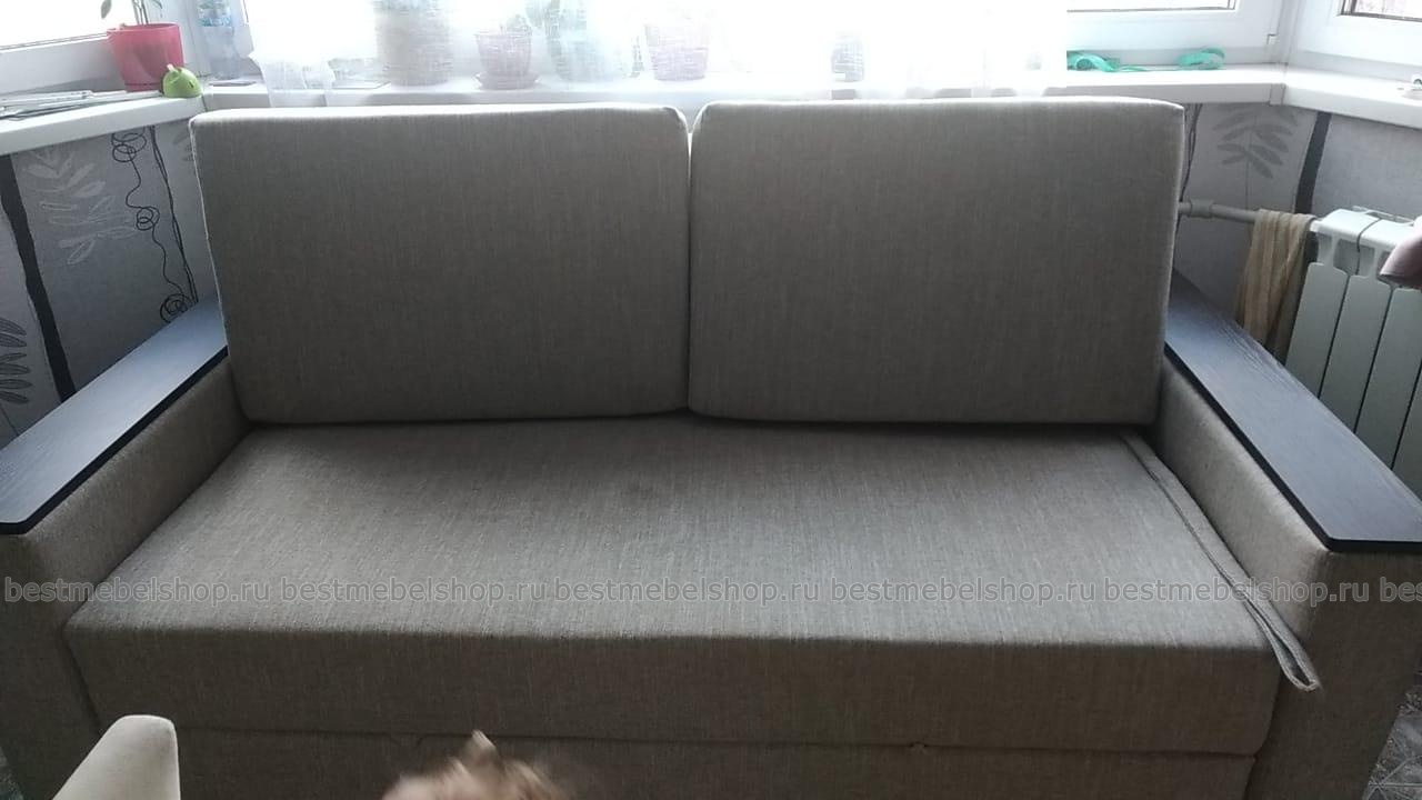 Симпатичный компактный диванчик. Немного жестковат для сидения, но для сна удобен.