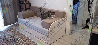 Эта софа для меня оказалась просто находкой. Были жёсткие ограничения по габаритам, особенно по длине. При этом нужен был диван, на котором можно спать не разбирая его. Конечно, при желании, эту модель можно и разобрать.Размер 1810*850*780 для меня идеальный. Вместительные ящики - дополнительный плюс. По совету консультанта в ТЦ Гранд Каньон СПб, заменила ППУ на более жёсткий и не прогадала. Отдельное ей спасибо. Для сборки, если это можно так назвать, необходимо было только прикрутить спинку и боковины. Справилась самостоятельно.