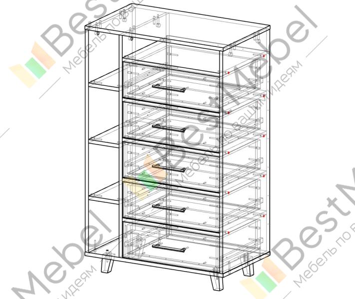 Комод Аллегро 24 BMS украсит современный интерьер и выигрышно представит декоративные предметы и книги. Компактный по ширине, комод оборудован пятью выдвижными ящиками с ручками-кнопками и пятью открытыми секциями без глухих задних стенок. Визуальную легкость модели придают высокие ножки, а контрастное цветовое решение сразу привлекает к себе внимание. Купить комод Аллегро 24 BMS с выбором фурнитуры и цвета по каталогу вы сможете на сайте нашего интернет-магазина.