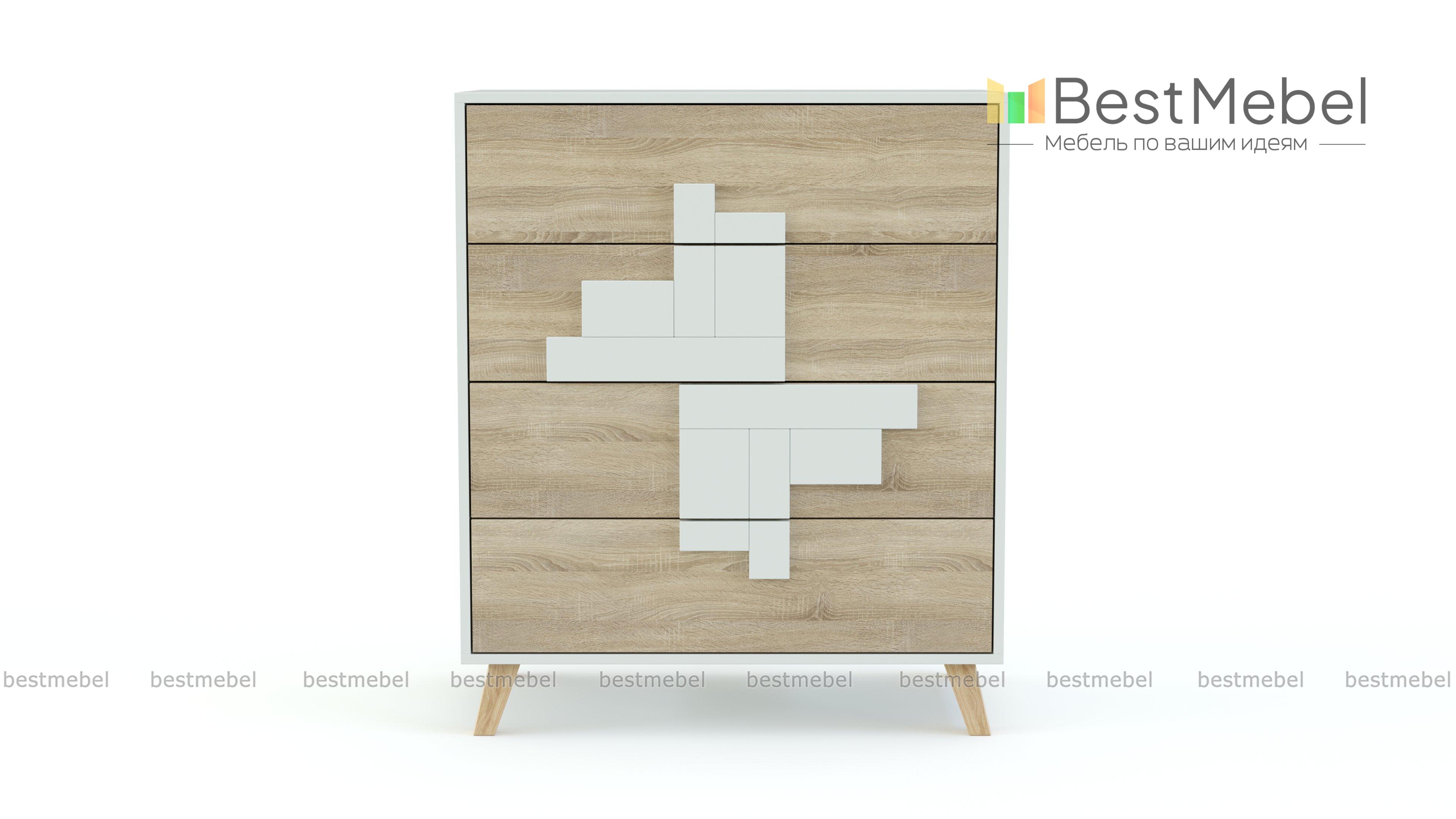 Комод Анлер BMS с оригинальным геометричным декором фасада выполнен в нейтральных древесных тонах. Расположенный на высоких скошенных ножках, комод гармонично впишется в интерьеры скандинавского стиля. Для удобного хранения одежды, аксессуаров и разнообразных бытовых мелочей конструкцией предусмотрены четыре выдвижных ящика без лицевой фурнитуры, а столешница станет подставкой для предметов декора. Купить комод Анлер BMS приглашаем в наш интернет-магазин по доступной цене.