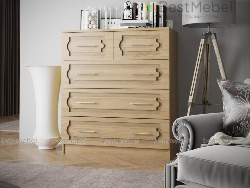 Практичный комод Дворянка 2 – это небольшое, но в то же время многофункциональное изделие, которое может похвастаться красивым и стильным исполнением. Замечательный современный дизайн делает модель очень популярной. Пять выдвижных ящиков разной вместительности станут идеальным хранилищем для одежды, аксессуаров и многих вещей различного характера. По Вашему желанию возможен выбор другого цветового решения из предложенных нами вариантов. Заказать такую мебель можно на нашем сайте.