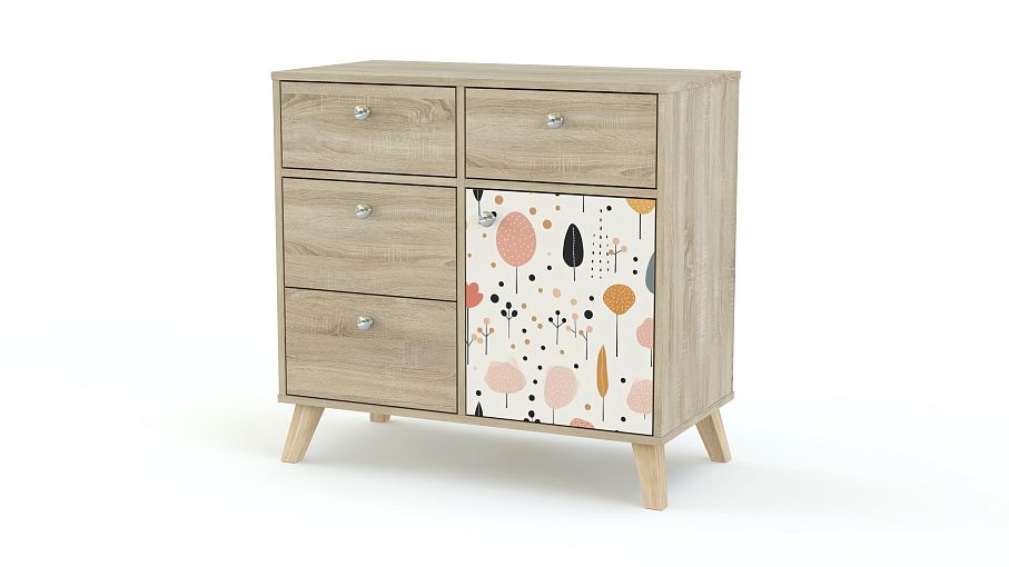 Комод Эльза 12 BMS поможет сохранить порядок в детской и украсит интерьер. Четыре выдвижных ящика и закрытая секция с полкой отлично подходят для хранения мелких вещей, а высокие ножки позволяют легко проводить уборку. Тумба выполнена из качественной ЛДСП с древесным рисунком, фасад распашной дверцы выделен ярким акцентом — стойким принтом в технике фотопечати. Купить комод Эльза 12 BMS с учетом необходимых размеров вы сможете по доступной цене в нашем интернет-магазине.