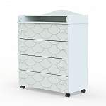 Комод Фисташка BMS – выполненный в белом цвете и украшенный по фасаду фрезерованным рисунком, дополнит интерьер современной детской. Для удобного хранения постельного белья, одежды ребенка и средств по уходу предусмотрены четыре вместительных выдвижных ящика с ручками-кнопками и просторная столешница. Оборудованный колесиками, комод легко перемещается, облегчая уборку в комнате. Купить комод Фисташка BMS вы сможете в нашем интернет-магазине по доступной цене.