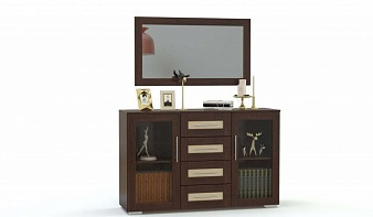 Комод Гаурон-К №1.1 BMS - интерьерная модель с оригинальными фасадами, которая подчеркнет дизайн спальни или гостиной в неоклассическом или классическом стиле. Темные древесные тона легко сочетаются с декоративными вставками из стекла, а хромированные ручки-рейлинги дополняют дизайн комода. Широкая конструкция позволяет разместить необходимые мелочи, предметы декора и книги, а навесное зеркало станет отличным помощником в нанесении макияжа и уходе за кожей. Купить по привлекательной цене комод Гаурон-К №1.1 BMS с изменением фурнитуры и материалов по каталогу приглашаем на наш сайт.