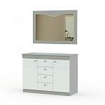 Комод Гера 10 BMS - для ценителей гармоничных пропорций и приглушенных оттенков современной классики. В центре широкого вместительного комода - ряд из четырех бельевых ящиков, а по бокам располагаются распашные отделения с полками. Рама большого навесного зеркала, дополняющего комод, имеет плавный изгиб, эффектно сочетаясь с линиями фрезеровки фасада. Купить комод Гера 10 BMS для меблировки прихожей, гостиной или спальни вы сможете на сайте нашего интернет-магазина.
