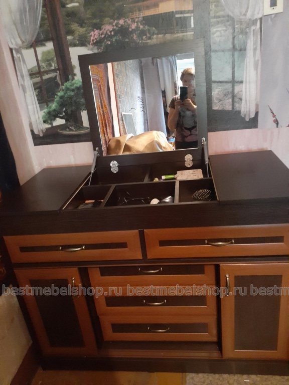 Оригинальная конструкция, вместительный, к сожалению очень некачественные секретерные петли, пришлось заменять