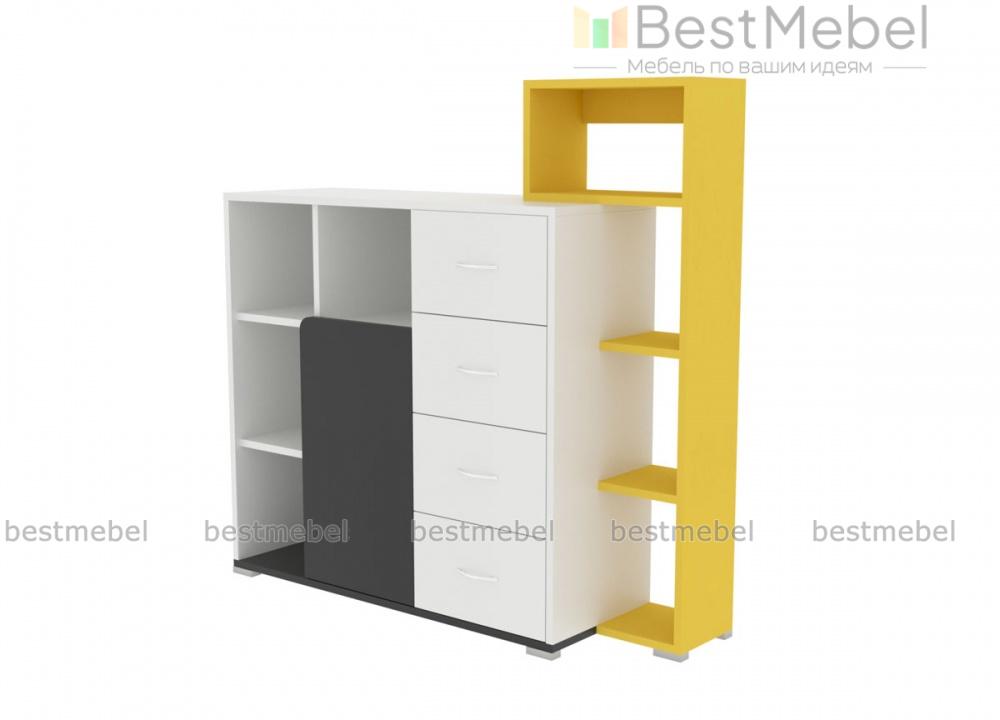 Комод Молодежный Бруно BMS – отличный выбор для динамичного интерьера комнаты современного подростка. Выполненный из экологичных материалов, креативный комод гармонично впишется в меблировку и с легкостью разместит книги, канцелярские принадлежности, игры и множество мелочей. Модель, оборудованная четырьмя выдвижными ящиками, распашным отделением, нишами и надстройкой с открытыми полками, сочетает нейтральные оттенки с контрастными вставками. Купить комод Молодежный Бруно BMS приглашаем в наш интернет-магазин.