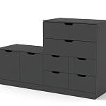Комод Нордли Nordli 29 благодаря наличию ящиков разных размеров и распашным отделениям обеспечит удобное хранение всевозможным бытовым вещам и предметам гардероба. Вместительный, но при этом не громоздкий, комод имеет ступенчатую конструкцию и выполнен в светлых тонах. Сплошной гладкий фасад оснащен вырезными ручками, которые одновременно играют декоративную роль. Купить комод Нордли Nordli 29 в гостиную, спальню или прихожую вы сможете недорого на сайте нашего интернет-магазина. Выбирайте мебель в стиле IKEA (ИКЕА) от производителя BestMebelShop!