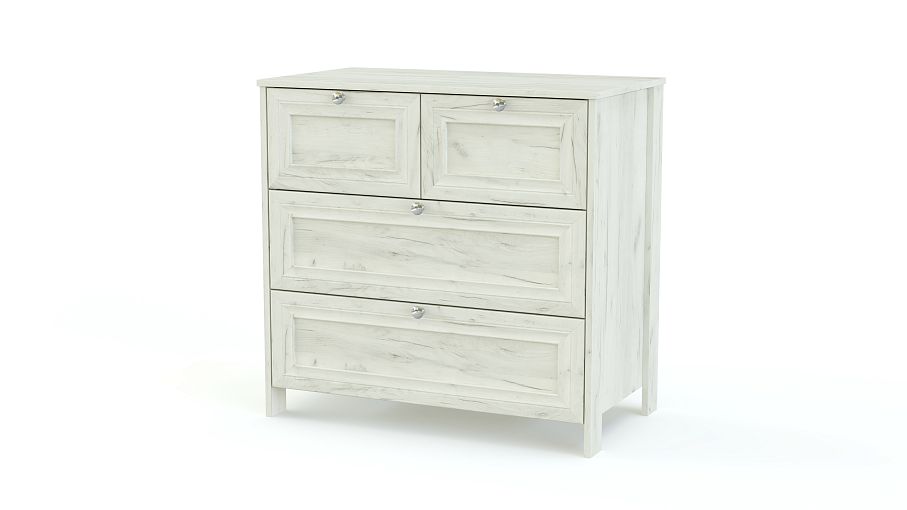Комод Соната BMS станет изящным дополнением спальни в стиле прованс или классическом. Комод на высоких ножках выполнен в светлых древесных тонах и декорирован изящной рамкой. Вы сможете эффектно разместить на столешнице декоративные предметы, а для хранения бытовых мелочей, одежды и домашнего текстиля конструкцией предусмотрены два малых и два больших выдвижных ящика с ручками-кнопками. Купить комод Соната BMS приглашаем к нам в интернет-магазин.