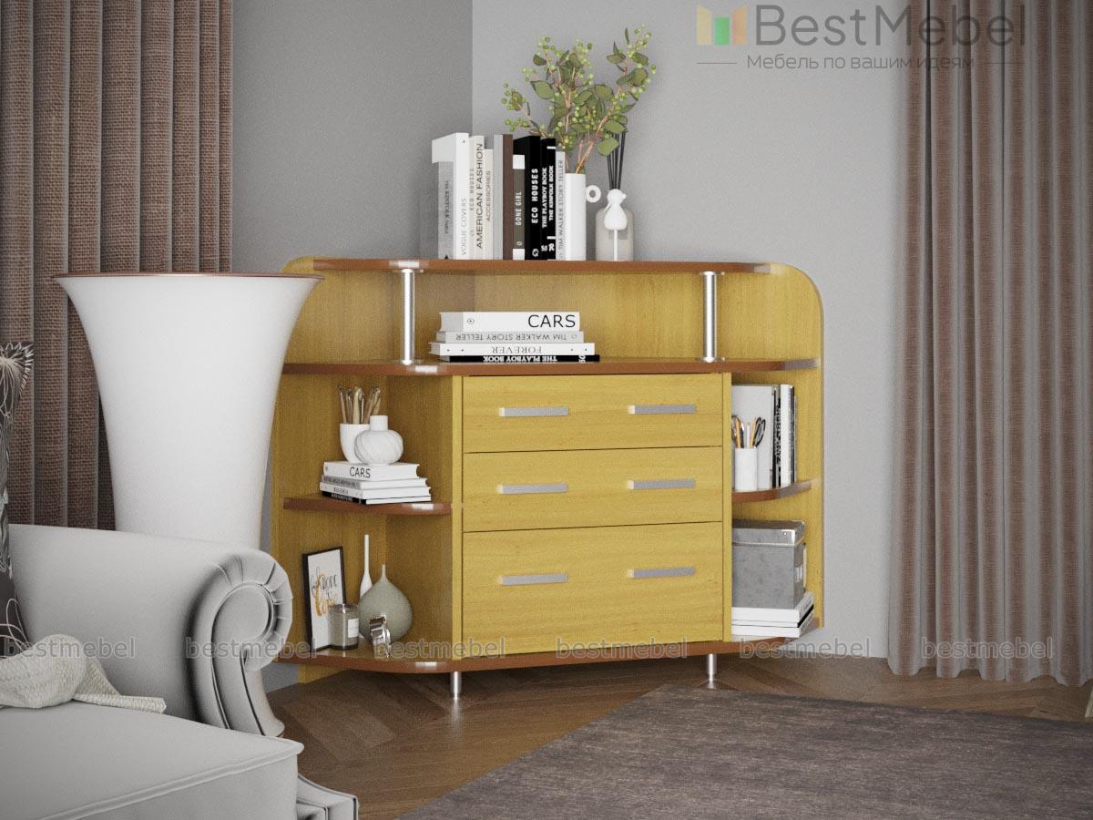 Комод угловой BMS станет настоящим спасением для малогабаритных помещений. Благодаря угловой конфигурации, он занимает соответствующее место, которое бывает просто бесполезно в доме или кабинете. Комод наделён разнотипными отделами: полками, ящиками. На его поверхности свободно можно установить небольшой телевизор, периферийную технику или лампу. Компактный предмет мебели оснащён изящной фурнитурой, которая придаёт ему изюминку. Купить по низкой стоимости комод угловой BMS можно в нашем интернет-магазине.