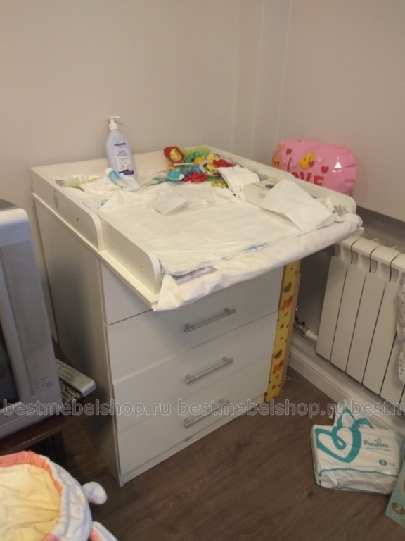 В нашей семье ожидалось пополнение. Понадобился вместительный комод с пеленальным столиком, при этом в деньгах были ограничены (покупать перед таким событием требуется много :-) ). После изучения различных предложений в сети остановился на комоде Ульяна-1 BMS. Здесь во первых на него была самая низкая цена, а во вторых была возможность изменить стандартные размеры и расцветку в соответствии с нашими потребностями. После заказа мне оперативно позвонили и согласовали изготовление с доставкой в течении двух недель. Через две недели нам его доставили в разобранном виде. На доставку нареканий нет. В течении недели я его неспешно собрал. По качеству претензий нет - Икее точно не уступает. Единственное пожелание вкладывать более подробную инструкцию по сборке - мне пришлось некоторые нюансы выяснять в сети. Хотя в магазине есть услуга по сборке за 1000 рублей, но решил сэкономить :-).