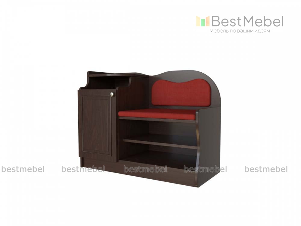 Обувница Граф 1 BMS станет эффектным акцентом в интерьере классической прихожей. Элегантная модель в темном оттенке венге оборудована открытыми обувными полками, распашной тумбой и нишей для мелочей, а также сиденьем со скругленной высокой спинкой. Мягкие накладки на сиденье выполнены в яркой контрастной ткани, рамочный фасад дверцы фрезерован. Купить обувницу Граф 1 BMS, которая сэкономит пространство и украсит входную зону, приглашаем в наш интернет-магазин.