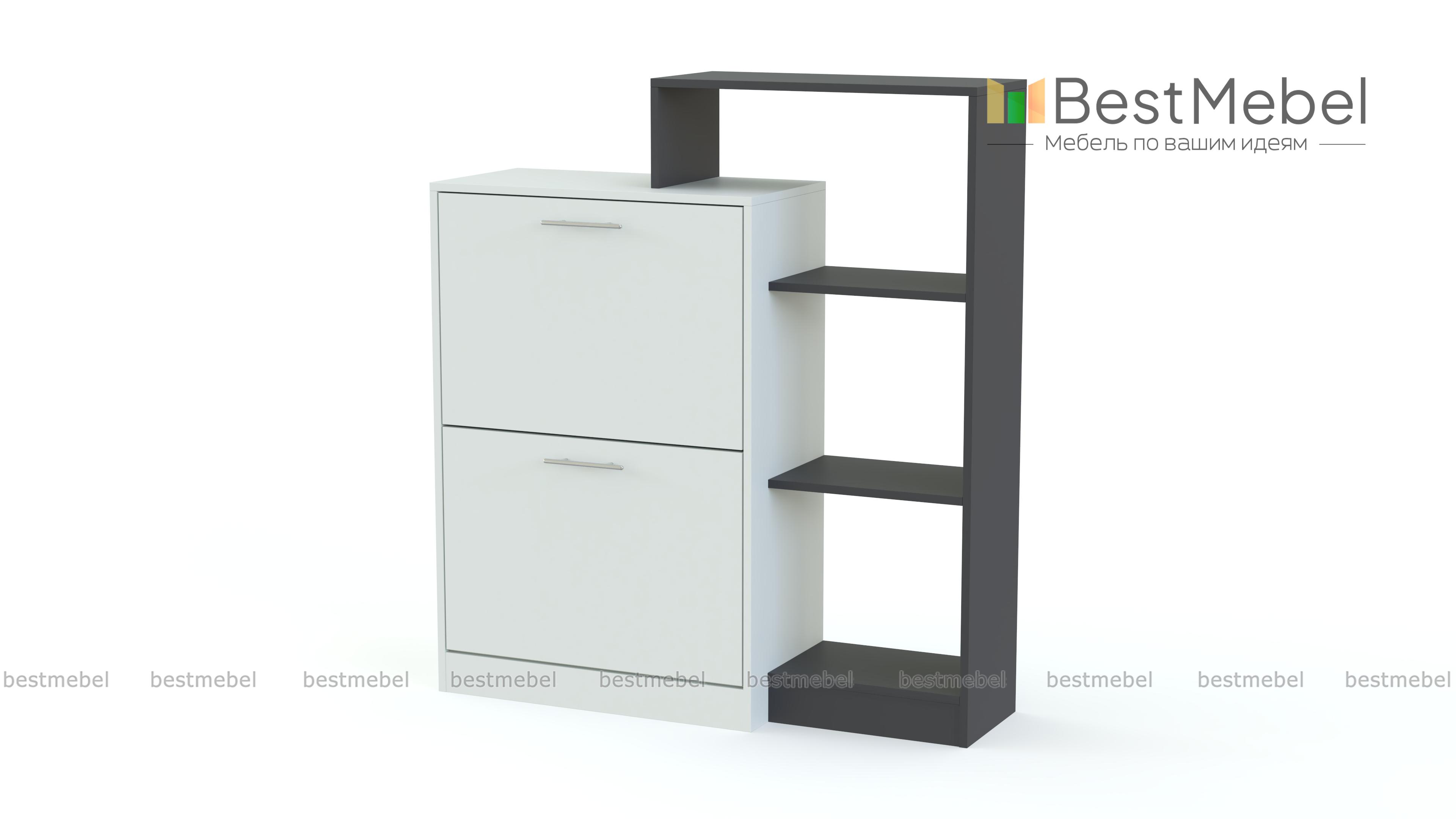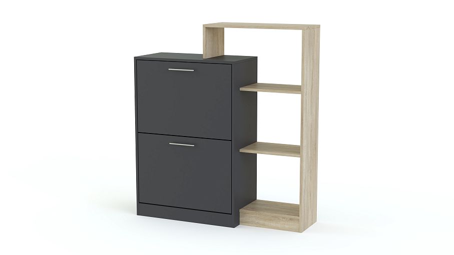 Обувница Лаф 4 BMS – практичная система хранения и оригинальный интерьерный акцент. Комбинированная модель объединила тумбу с двумя откидными обувными лотками и мини-стеллаж с открытыми полками, на которых будут всегда под рукой принадлежности по уходу, аксессуары и разнообразные бытовые мелочи. Визуальную легкость разноуровневой конструкции придает контрастное цветовое решение. Купить обувницу Лаф 4 BMS и обустроить стильную и комфортную входную зону вам поможет наш интернет-магазин.