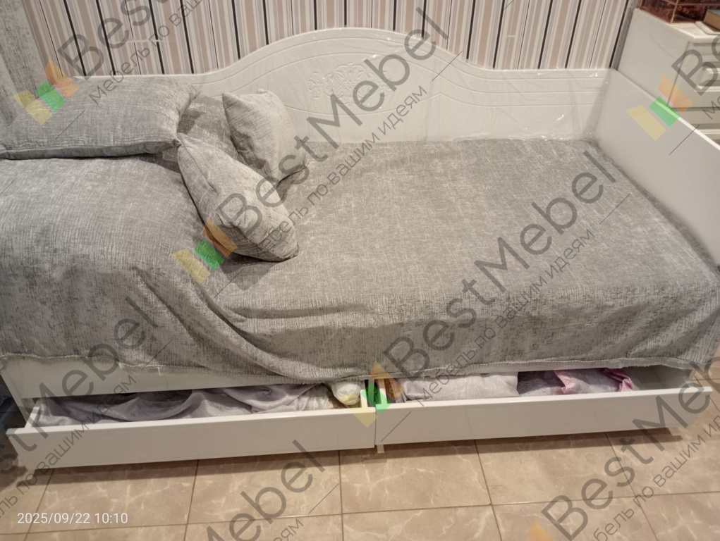 Если бы можно поставить 10 звезд- поставила бы с удовольствием! Кровать просто великолепна! Но хотелось бы сказать о самой услуге. В стандарте кровать подразумевает ящики на колесиках. Инженеры бестмебели разработали проект, в котором яшики были с направляющими. Прислали проект на утверждение. После согласования доставили ( как обещали) не только день в день, но минута в минуту. Сборщик( компания -партнер) тоже не подвел. Собрал быстро и аккуратно. Кровать получилась просто восторг! Белая, с глянцевой спинкой и ящиками. Как можно было совместить в одном проекте фундаментальность и изящество, не знаю, но бестмебели это удалось за счет фигурной спинки и фрезеровки. Качество изумительное. Ровненькая, беленькая, тяжеленькая, устойчивая, надежная и очень красивая. Огромная благодарность всем: от менеджера до сборщика! Качество и организованность! Желаю успехов и процветания, потому что с такой фирмой иметь дело - одно удовольствие!