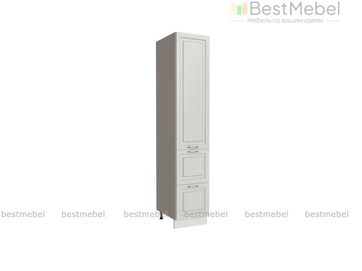 Пенал Гарда с ящиками BMS – практичная система хранения и интересный акцент в интерьере современной кухни. Высокий пенал оборудован двумя глубокими выдвижными ящиками в основании и распашным отделением с полками, в которых смогут разместиться посуда для готовки, продуктовые запасы, а также разнообразные кухонные аксессуары. Фрезерованные фасады с имитацией текстуры камня дополнены лаконичными хромированными ручками-скобами. Купить пенал Гарда с ящиками BMS приглашаем недорого в наш интернет-магазин.