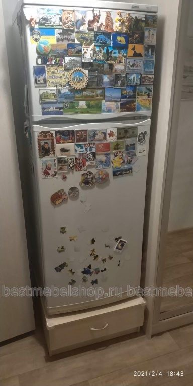 Если Вам надоело нагибаться у холодильника, а покупать новый Вы не видите смысла - это самое оно!Чуть выпирает вперед - потому-то в розетку сзади уперлось.