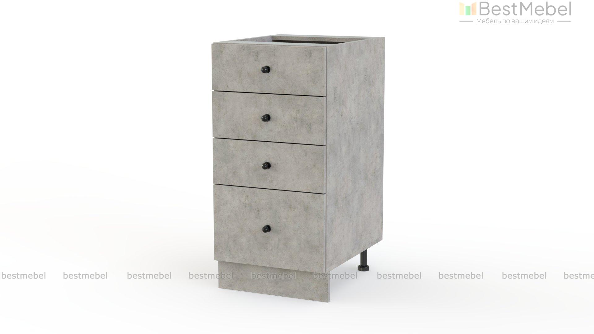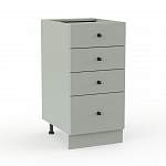 Шкаф нижний 4 ящика Нео BMS оборудован тремя малыми выдвижными ящиками для кухонных мелочей и одним большим, предназначенным для более габаритных вещей. Корпус и лаконичный фасад тумбы изготовлены из прочной ламинированной плиты базового оттенка, на ящики установлены миниатюрные ручки контрастного цвета. Регулируемые по высоте ножки скрыты за цоколем в тон фасадам. Купить шкаф нижний 4 ящика Нео BMS и сделать хранение удобным вам поможет наш интернет-магазин.