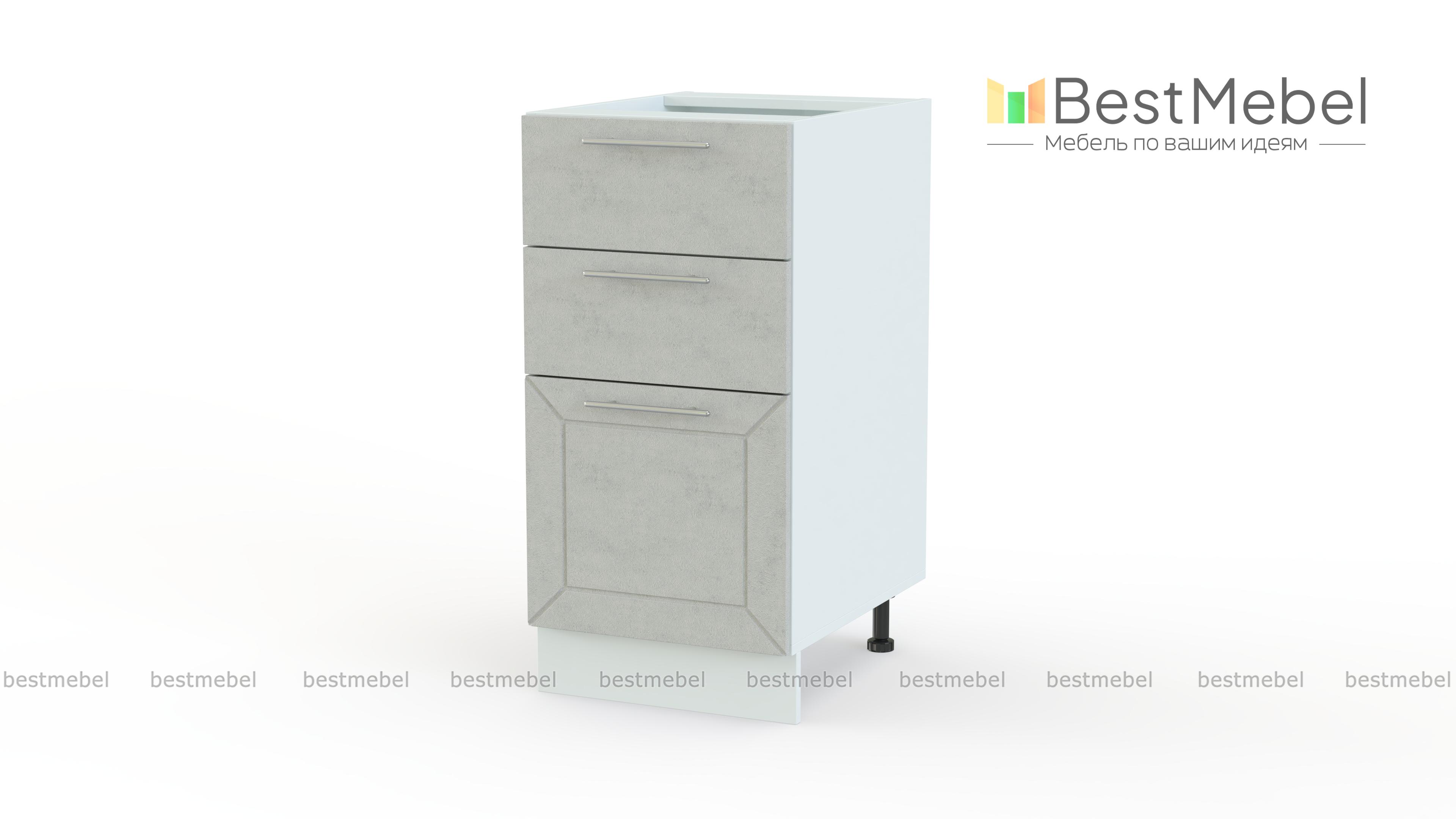 Шкаф нижний с 3-мя ящиками Тетчер BMS отличается оригинальной конструкцией и общим для всех предметов серии лаконичным дизайном в духе популярной современной классики. Широкая модель оборудована тремя выдвижными ящиками разной высоты и сможет удобно разместить как мелочи, так и более габаритные кухонные принадлежности. Гармонично дополнят нижний ряд модулей фасады с нежной матовой поверхностью и изящными ручками. Купить шкаф нижний с 3-мя ящиками Тетчер BMS вы сможете быстро и просто в нашем интернет-магазине.