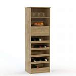 Шкаф Полли 6 BMS – компактный и вместительный за счет высоты, предназначен специально для хранения вин. Узкий шкаф оборудован полками с защитными бортиками для горизонтального размещения бутылок, открытыми полками для сопутствующих аксессуаров и предметов декора и выдвижным ящиком под мелкие вещи. Исполнение в трендовом натуральном оттенке с имитацией фактуры дерева превращает модель в элемент дизайна современной гостиной, столовой или кабинета. Купить шкаф Полли 6 BMS вы сможете в нашем интернет-магазине с учетом нужных размеров.