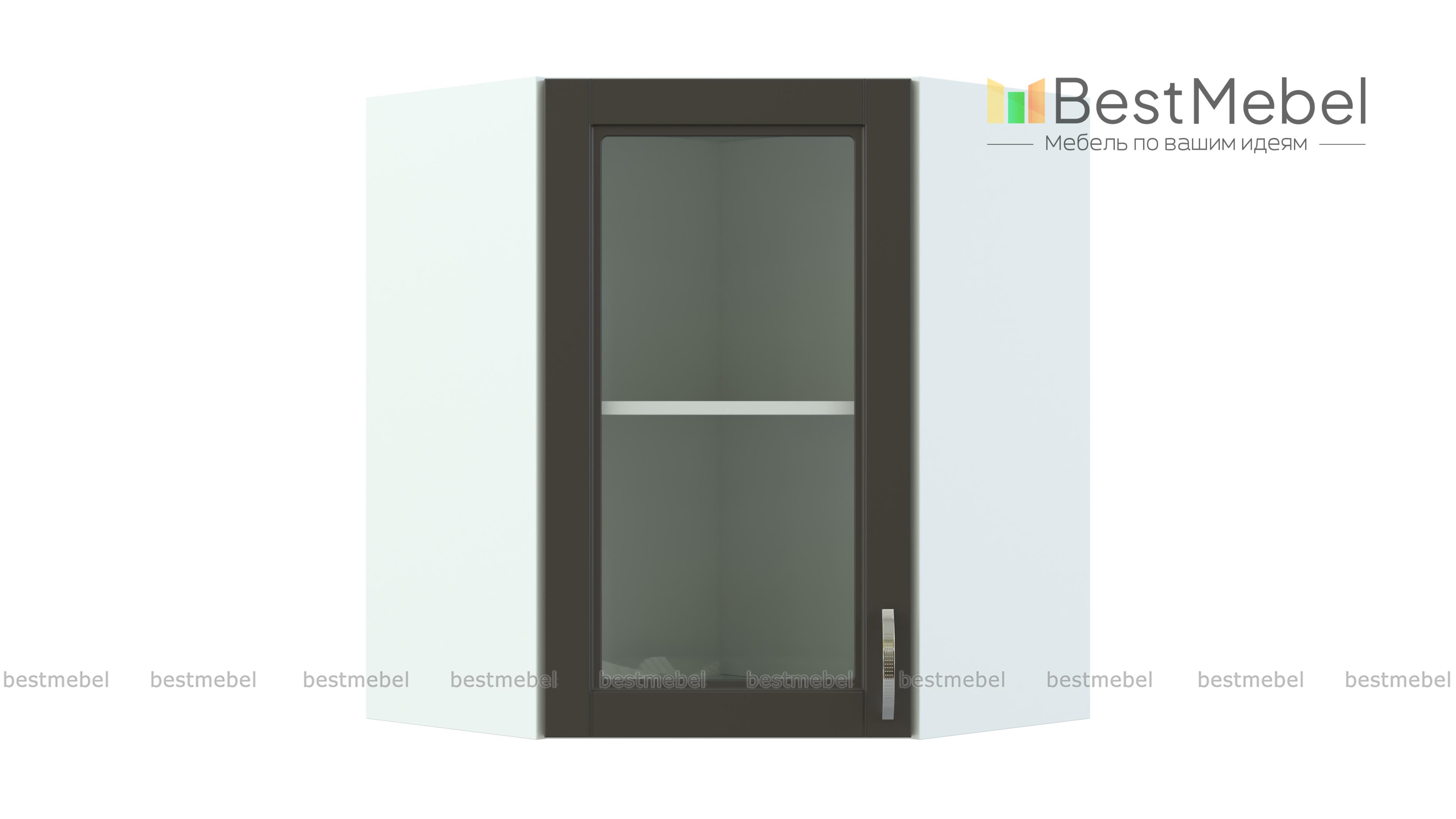 Шкаф верхний Лондон угловой стекло BMS – это элегантная витрина в форме трапеции, которая отличается особенной вместительностью, выгодно используя пространство. Шкаф также используется для стыковки прямых модулей в кухонном гарнитуре, объединяя левое и правое крыло. Просторное внутреннее отделение с полкой оптимально для хранения посуды, специй, чая и кофе, а украшением домашнего интерьера станет застекленный рамочный фасад с декоративной решеткой. Купить шкаф верхний Лондон угловой стекло BMS приглашаем в наш интернет-магазин.