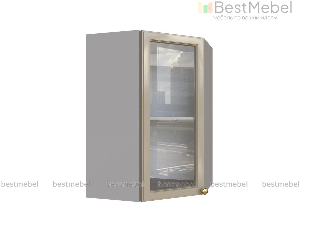 Шкаф верхний угловой остекленный Шарлин BMS имеет форму трапеции и незаменим в комплекте Г-образной формы. Шкаф предназначен для стыковки прямых элементов и отличается вместительностью при внешней компактности. За распашной застекленной дверцей располагается отделение с полкой для посуды, кухонных аксессуаров, чая и кофе. Классический дизайн рамочного фасада с ручкой-кнопкой под бронзу эффектно смотрится в традиционных интерьерах. Купить шкаф верхний угловой остекленный Шарлин BMS по приятной цене приглашаем в наш интернет-магазин.