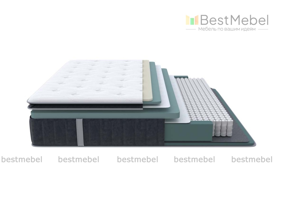 Состав: Меморикс 2см (Ортофом (ППУ) с эффектом памяти) \ Ортофом (ППУ) мягкий 2см \ Ортофом (ППУ) высокоэластичный 5 см \ Спанбонд \ EVS620 16см \ рамка к ПБ \ Термовойлок \ Ортофом (ППУ) повышенной жесткости 2см \ Короб усиленный (ВППУ).