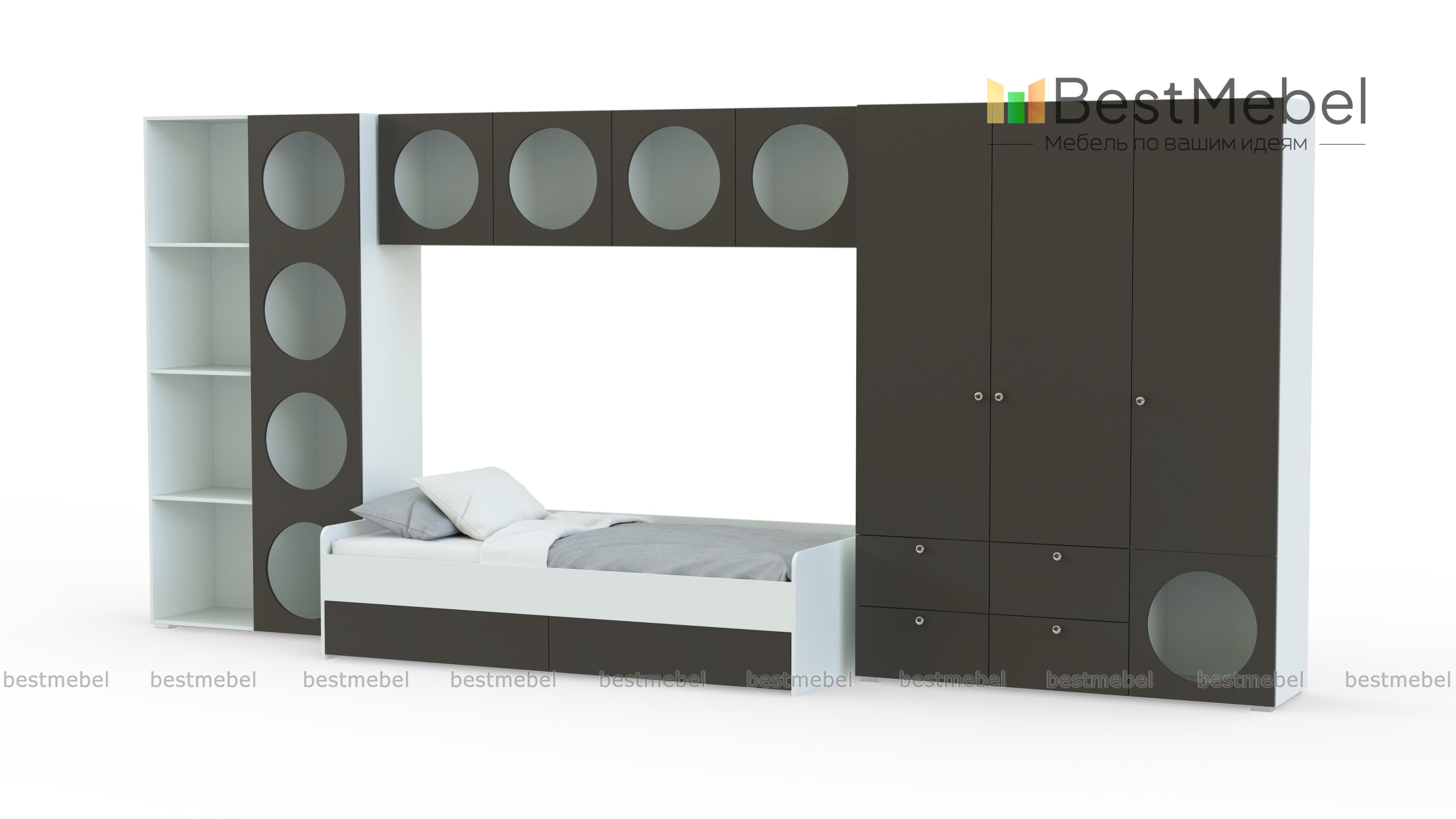 Детская комната Авелин 3 BMS с геометричными круглыми вырезами поможет создать комфортное пространство для сна и хранения вещей. Благодаря стеллажу, подвесным полкам и просторному платяному шкафу у ребенка будет много места для гардероба, школьных принадлежностей, игрушек и гаджетов. Для полноценного отдыха — функциональная кровать с бельевыми ящиками. Купить детскую комнату Авелин 3 BMS в оттенках нашего каталога и любых размерах приглашаем в наш интернет-магазин.