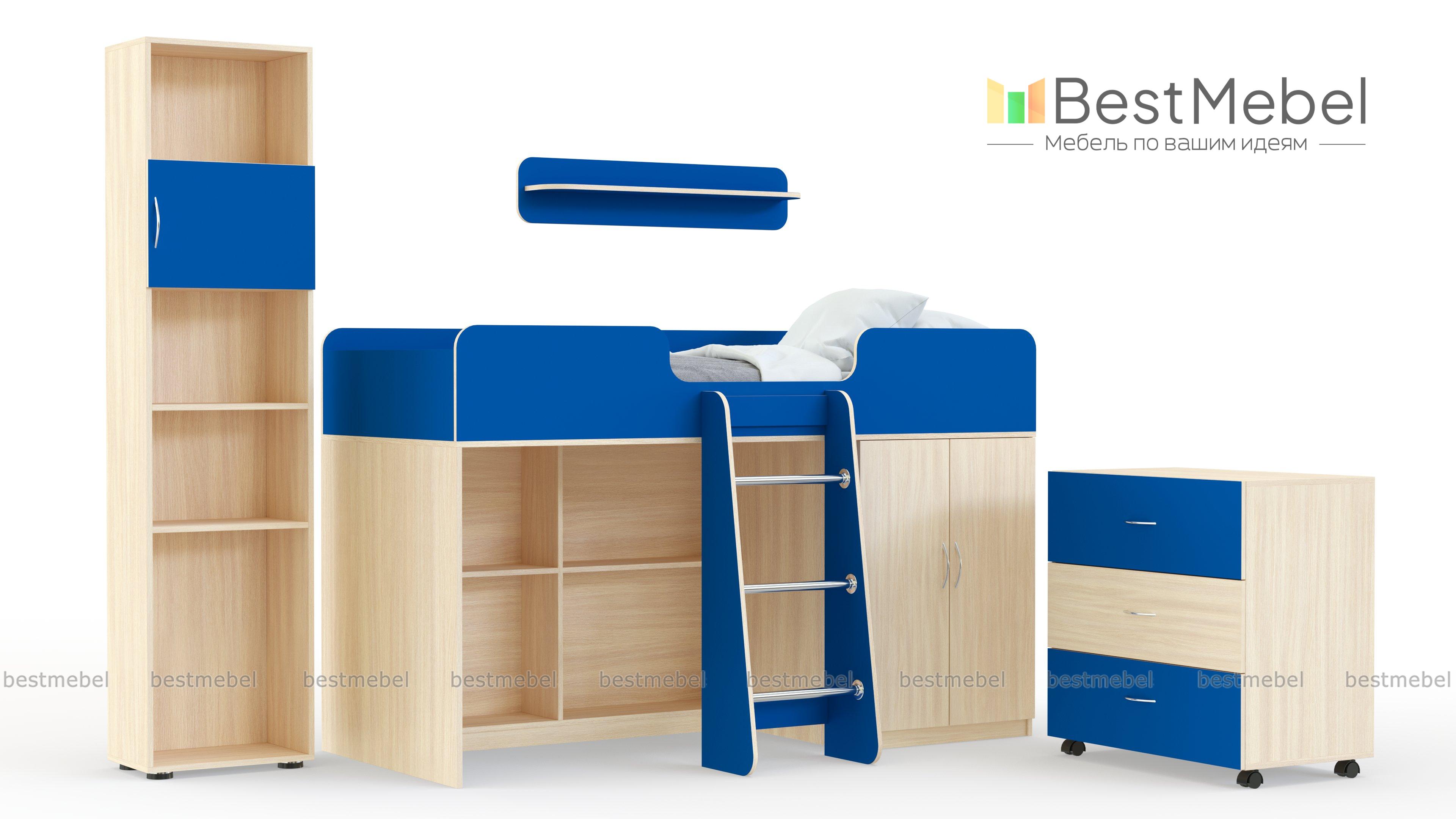 Детская комната Миф 2.2 BMS представляет собой кровать-чердак, на первом ярусе которой располагаются распашной шкафчик, книжные полки и устойчивая лестница. Дополняют модульную композицию мобильная тумба с тремя выдвижными ящиками и комбинированный стеллаж для книг и игрушек. Выполненный в светлых ванильных тонах с белыми контрастными деталями, комплект станет отличным выбором для комнаты ребенка. Купить детскую комнату Миф 2.2 BMS вы сможете в нашем интернет-магазине по доступной цене.