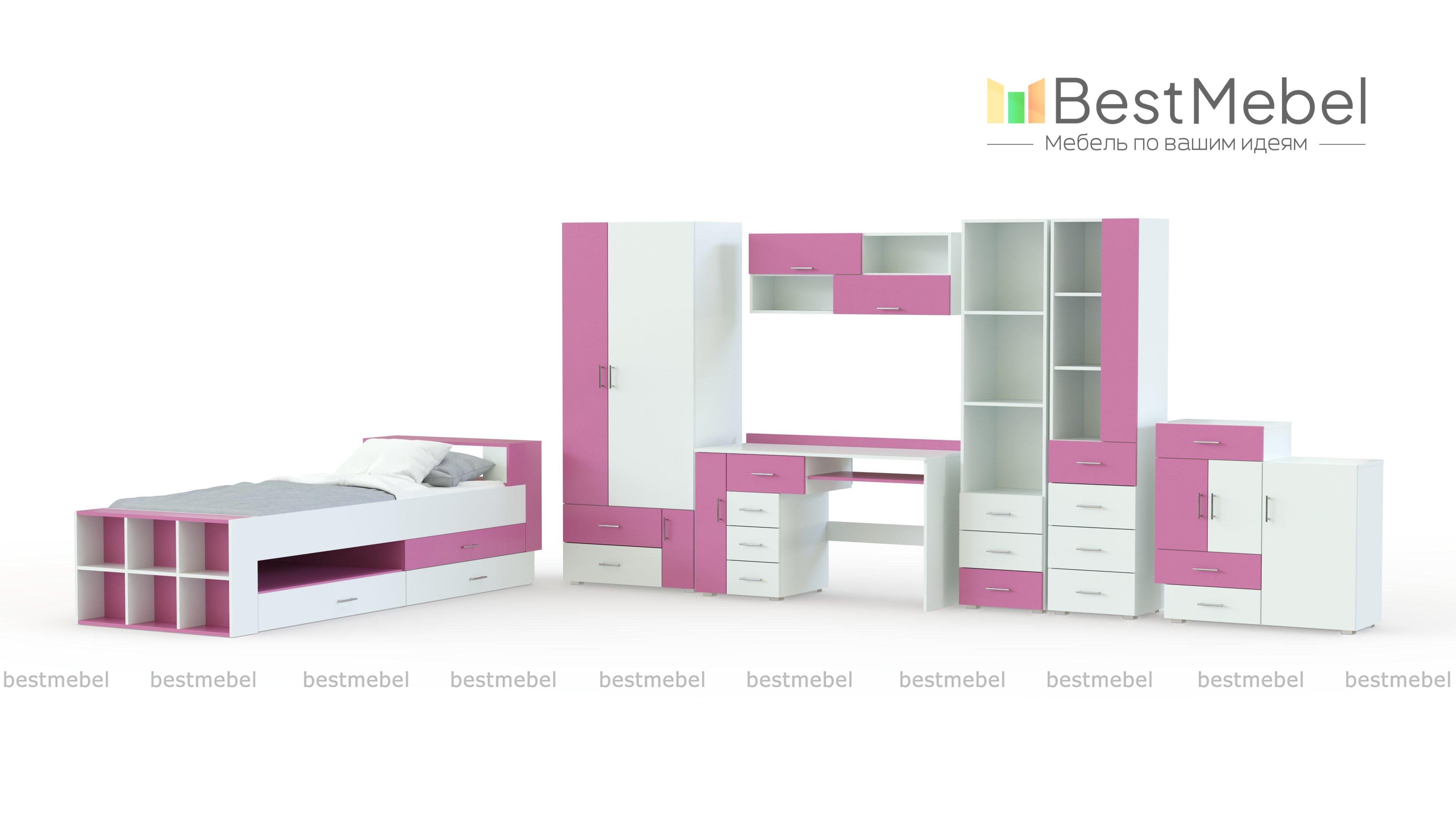 Детская стенка Валли 4 BMS поможет обустроить комфортную и стильную комнату для школьника. Яркий современный комплект оборудован всем необходимым для учебы и хранения гардероба ребенка. Стенка состоит из нескольких модулей – двухдверного шкафа, вместительного комода оригинальной конструкции, двух высоких комбинированных стеллажей, полки, письменного стола с тумбой и кровати. Фасады выполнены из экологичного износостойкого материала контрастных тонов со вставками. Купить детскую стенку Валли 4 BMS вы сможете в нашем интернет-магазине по лучшей цене.