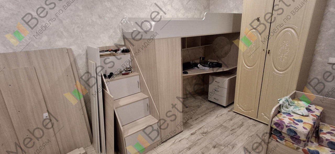 Заказ 00000657135. волшебная кровать, идеальное решение для небольшой детской комнаты. Сочетает и эргономичность и зонирование. Дети в восторге.