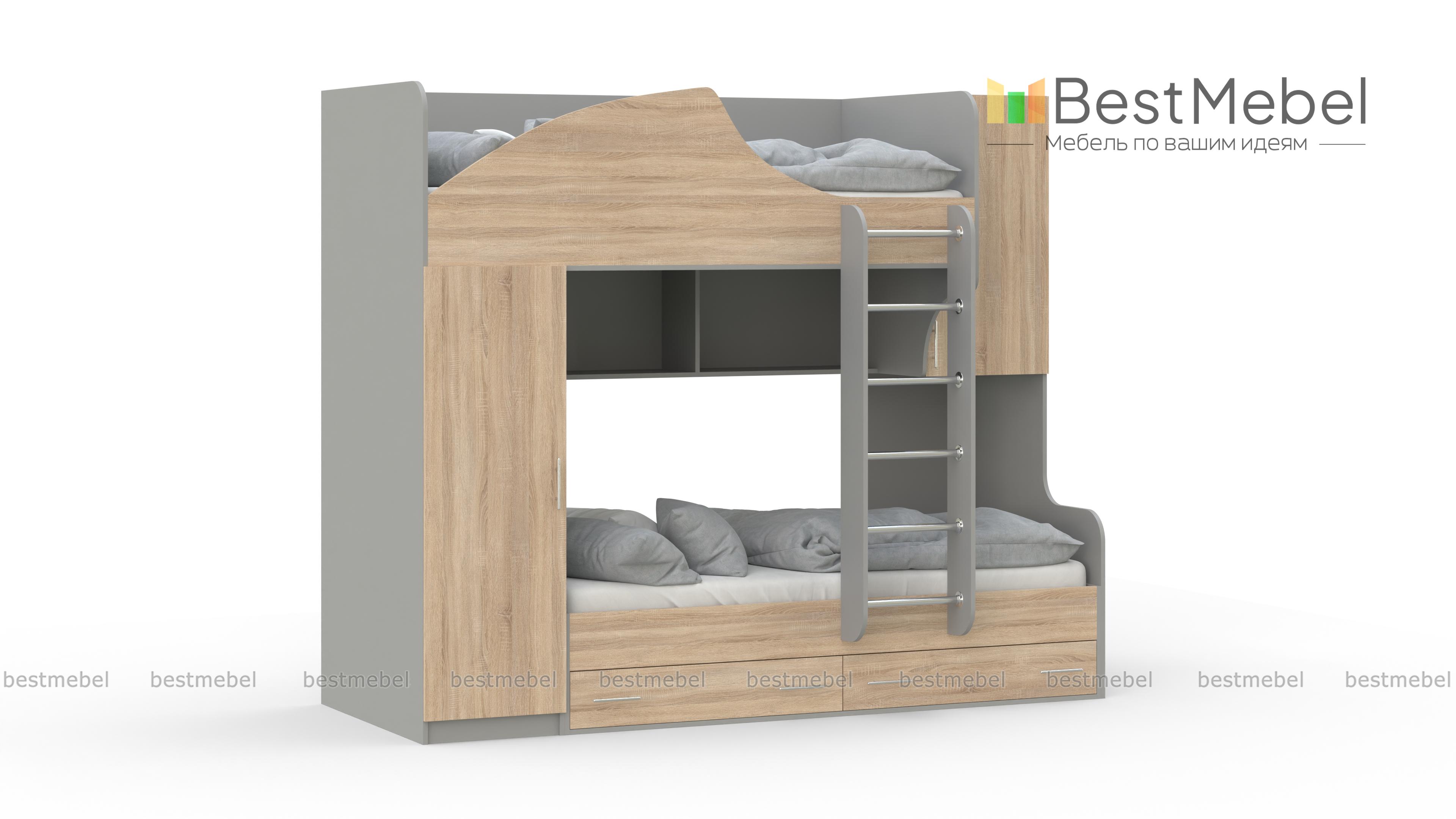 Двухъярусная кровать Белла 2 BMS – функциональная модель для детской в современном стиле. Кровать оборудована двумя просторными спальными местами, верхнее ограждено фигурно вырезанным, высоким бортиком. Для хранения книг и игрушек имеется открытая полка и распашной шкафчик между ярусами. Для предметов гардероба предусмотрен удобный встроенный шкаф. Купить двухъярусную кровать Белла 2 BMS, подобрав расцветку, вы сможете в нашем интернет-магазине.
