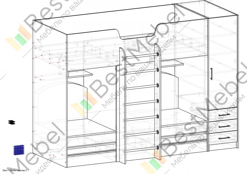 Кровать с диваном Мимоза 14 BMS – это практичное решение для детской комнаты, объединившее зону отдыха с удобной системой хранения. На верхнем ярусе располагается просторное спальное место с защитным бортиком, а на первом - разделенные лестницей ниши с мини-диванами и книжными полками. Разместить детские вещи поможет комбинированный пенал с выдвижными ящиками в основании. Купить кровать с диваном Мимоза 14 BMS, выполненную в светлых древесных тонах, приглашаем в наш интернет-магазин.