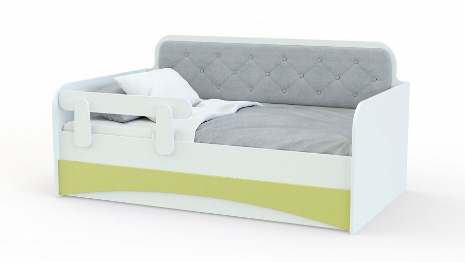 Кровать-тахта Фуксия BMS поможет оборудовать комфортную и уютную комнату девочек. Яркая модель сочетает корпус нейтрального белого цвета и вставки фисташкового оттенка, превращая практичную кровать в центральный элемент интерьера. Тахта оборудована просторным спальным местом с оригинальным защитным бортиком и безопасно скругленными боковинами. Спинка в мягкой тканевой обивке декорирована каретной стяжкой. Купить кровать-тахту для полноценного отдыха приглашаем в наш интернет-магазин, подобрав оптимальные параметры.