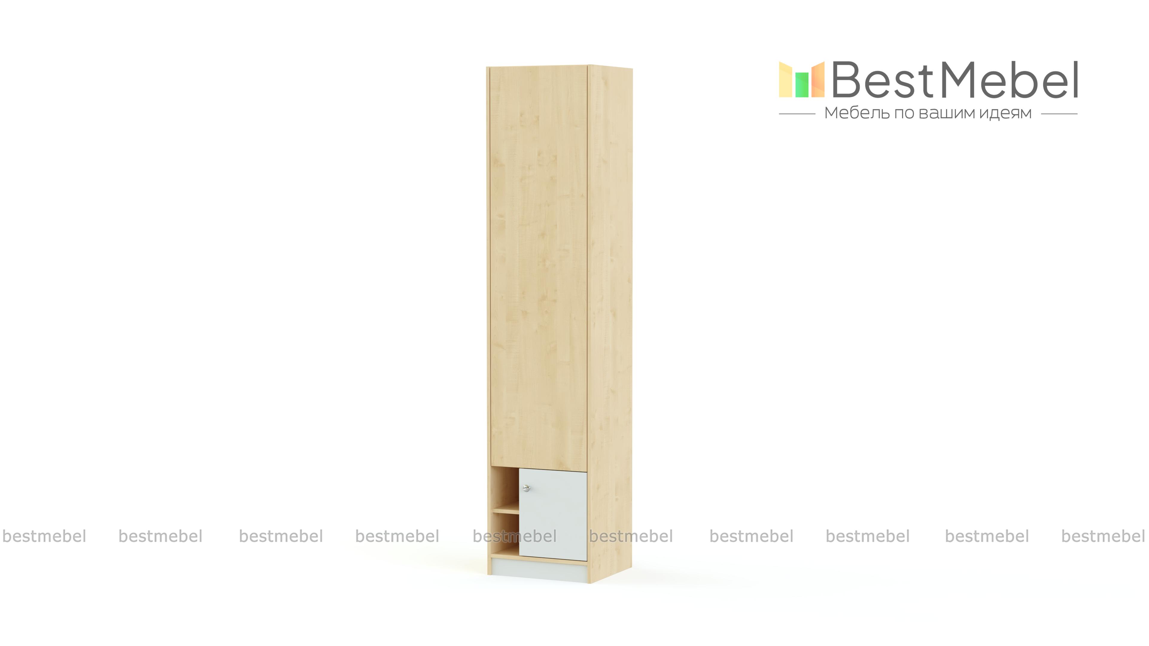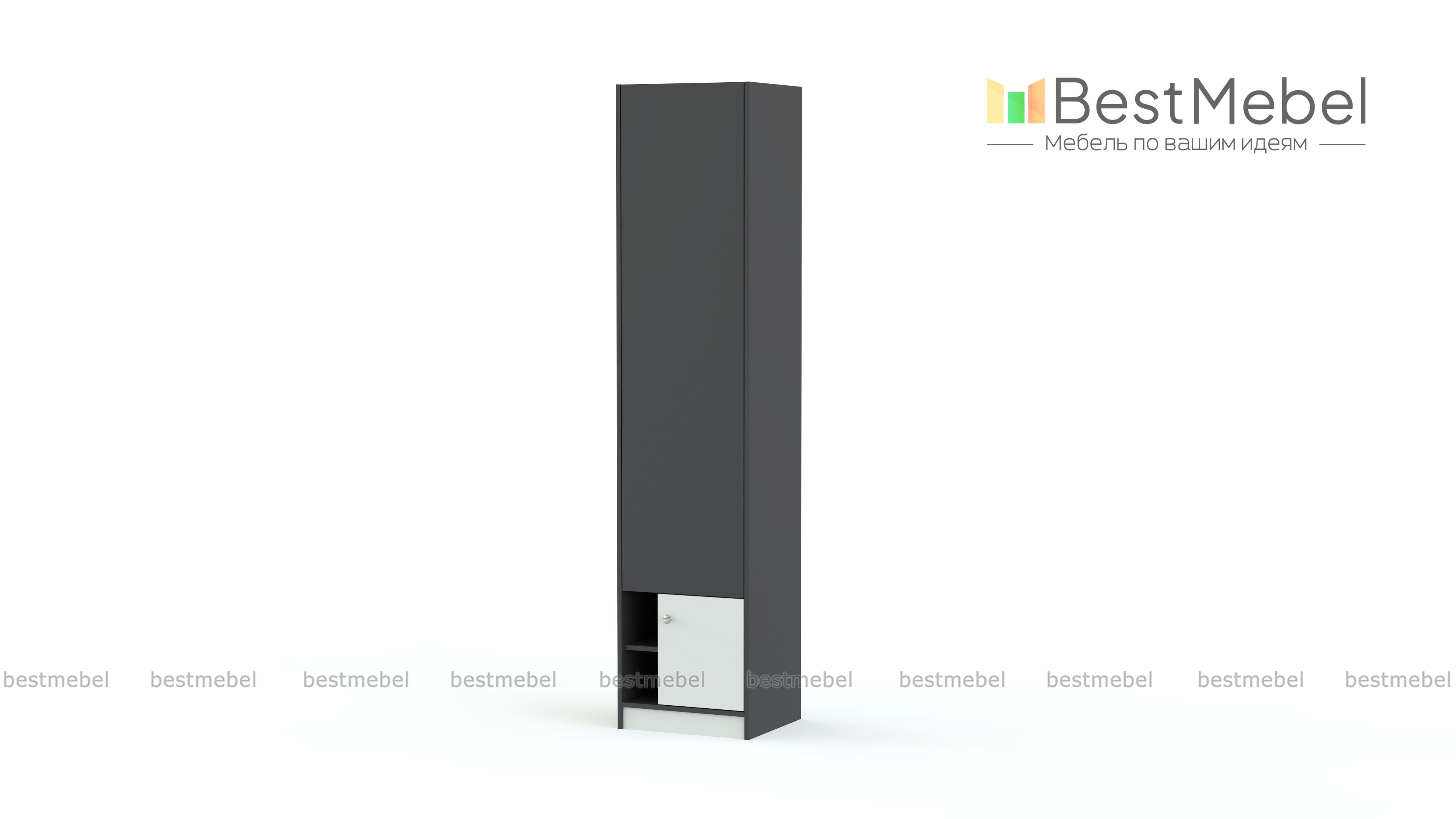 Шкаф Zoom BMS отличается компактными размерами и вместительностью за счет высоты. Лаконичная по форме, модель легко дополнит комплект или станет самостоятельным элементом молодежной комнаты, современной и функциональной. Шкаф оборудован распашным отделением для одежды и секцией с открытыми полочками и глухой дверцей в нижней части. Актуальное цветовое решение – древесные оттенки и насыщенные темные вставки добавят интерьеру контрастности. Купить шкаф Zoom BMS по доступной цене вы сможете в нашем интернет-магазине.