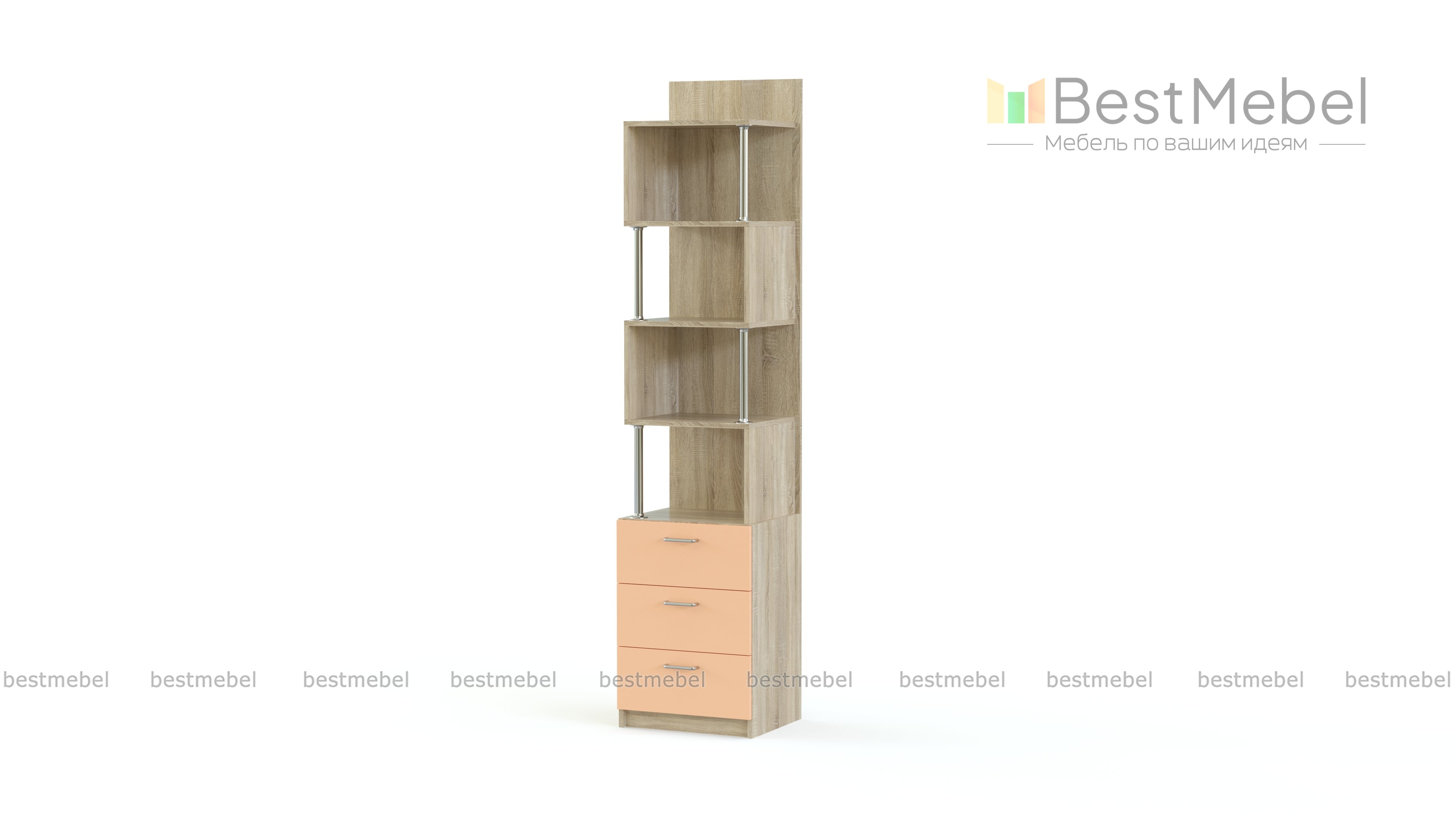 Стеллаж Ника 412 BMS станет практичным дополнением уютной современной детской. Компактная, но вместительная конструкция включает в себя тумбу из трех выдвижных ящиков в основании и расположенные змейкой на панели открытые полки с хромированными опорами. Модель позволит аккуратно разместить книги, игры, принадлежности для школы и творчества, а сочетание древесных тонов и ярких вставок создаст позитивную атмосферу для учебы и отдыха. Купить стеллаж Ника 412 BMS по доступной цене приглашаем в наш интернет-магазин.