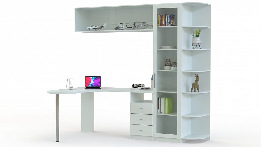 Стол письменный со шкафом Лето BMS предназначен для молодежных комнат и отвечает всем требованиям функциональности и безопасности. Композиция в светлых древесных тонах отличается визуальной легкостью и включает в себя угловой компьютерный стол с тумбой, навесную застекленную полку, книжный пенал со стеклянным рамочным фасадом и торцевой скругленный стеллаж. Разноплановые отделения помогут разместить канцелярские мелочи, книги, папки и интерьерные украшения. Купить стол письменный со шкафом Лето BMS приглашаем в наш интернет-магазин быстро и просто.