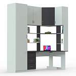 Угловой компьютерный стол со шкафом Оникс BMS – это стильная современная композиция для спален, гостиных, молодежных комнат. Компактная благодаря угловой конструкции и вместительная, композиция объединила компьютерный стол с подставкой под системный блок, открытые полки надстройки, распашные антресольные шкафы и распашной пенал. Нейтральный белый эффектно скомбинирован с глубокими оттенками, имитирующими фактуру дерева. Купить угловой компьютерный стол со шкафом Оникс BMS приглашаем в наш интернет-магазин.