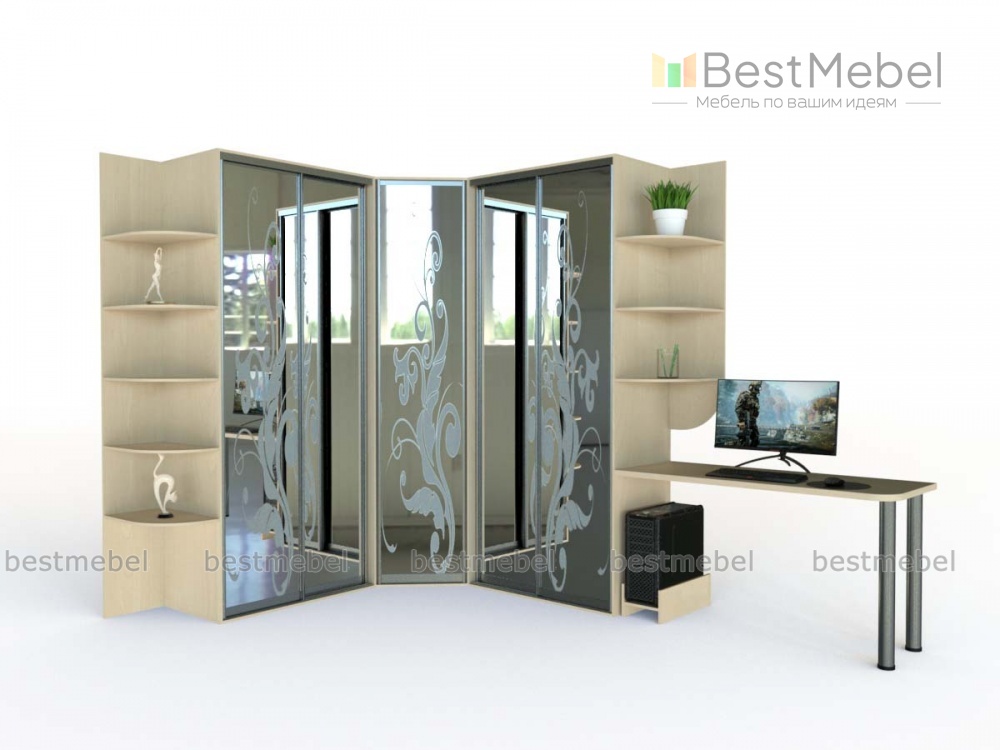 Угловой шкаф Дунай 14 BMS отличается элегантным дизайном и высокой функциональностью. Встроенная композиция состоит из углового однодверного шкафа, двух двухдверных, торцевых стеллажей со скругленными полками и прямоугольного компьютерного стола с выдвижной полочкой для клавиатуры. Зеркальные фасады, украшенные фантазийным рисунком, визуально расширяют границы комнаты и придают крупногабаритной конструкции легкость. Купить угловой шкаф Дунай 14 BMS для гостиной или спальни приглашаем в наш интернет-магазин.