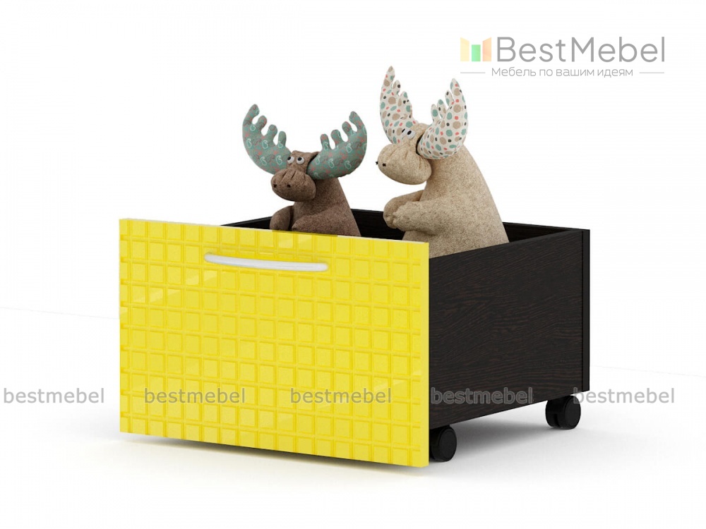 Ящик в детскую Солнышко 2 BMS гармонично дополнит другие предметы серии и компактно разместит игрушки, книги и разнообразные мелочи. Выкатной ящик с колесиками оборудован одним отсеком для хранения и выполнен в сочетании темного венге корпуса с глянцевым солнечно-желтым фасадом, украшенным фрезеровкой. Гарантией долговечности станут простота конструкции и износостойкость материалов. Купить ящик в детскую Солнышко 2 BMS недорого вы сможете в нашем интернет-магазине.