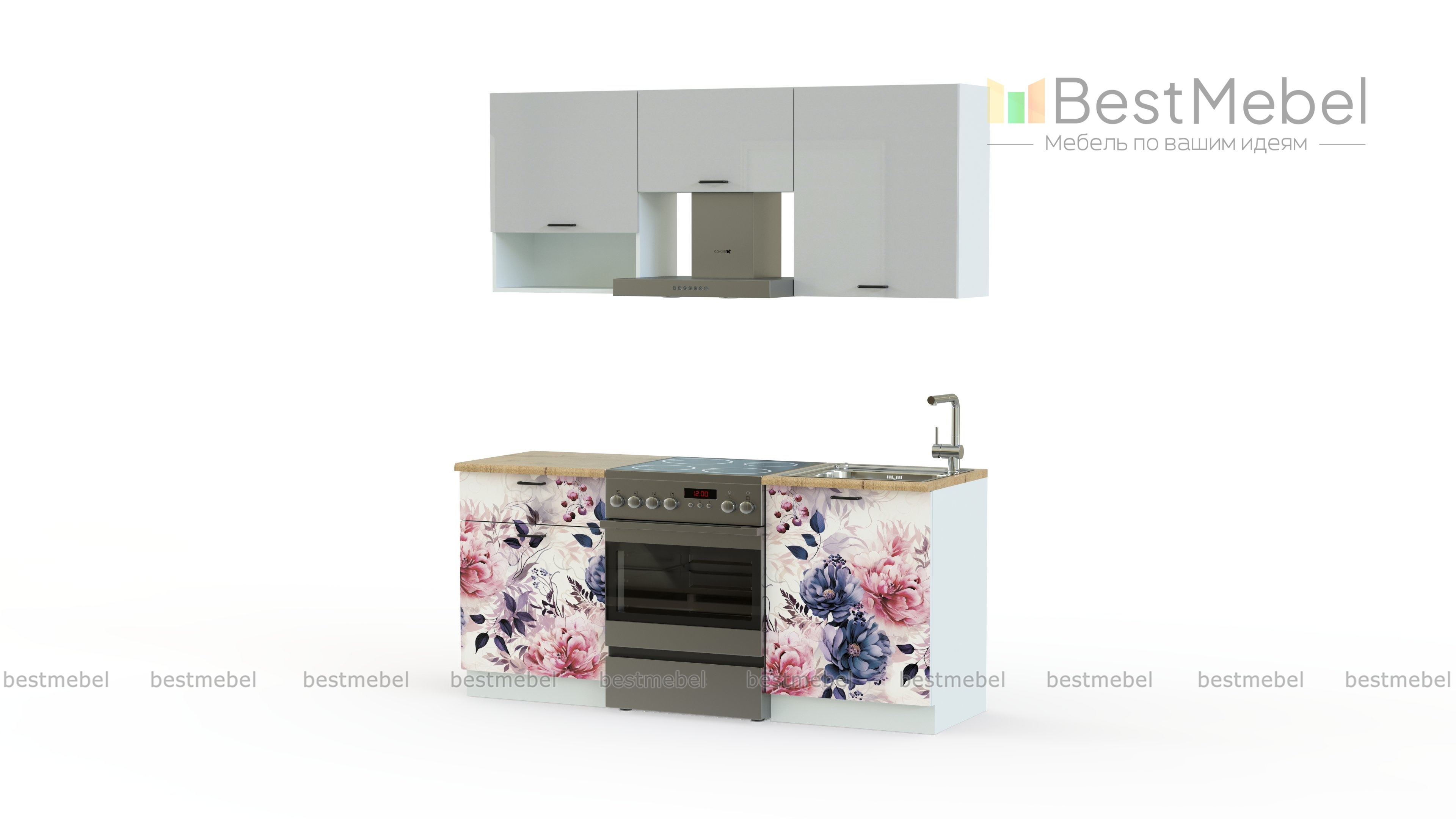 Кухня Альберта 20 BMS - нежная и воздушная благодаря светлой палитре и цветочному принту в технике фотопечати. С комфортом обустроить небольшое пространство помогут два напольных модуля и три навесных. Кроме распашных отделений для посуды и продуктов система хранения включает в себя отделение над вытяжкой, выдвижной ящик и открытую полочку для специй или декора. Купить кухню Альберта 20 BMS вы сможете на сайте нашего интернет-магазина, по желанию изменив размеры и цветовую гамму.