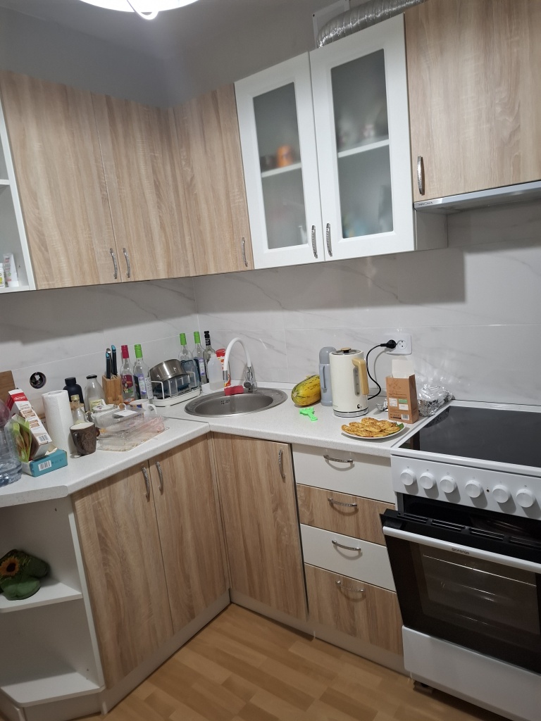 Отличная кухня! Переделывали под свой размер и поменяли цвет, более подходящий к нашему интерьеру. Собирали сами. Сложновато, но осуществимо, при желании. По схеме всё понятно, все детали в комплекте с обозначениями. Смотрится отлично, функционал очень удобный, на фото не доделали шкафчик с бутылочницей и нижний фасад.