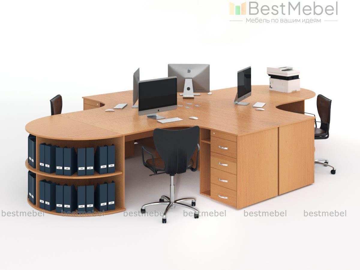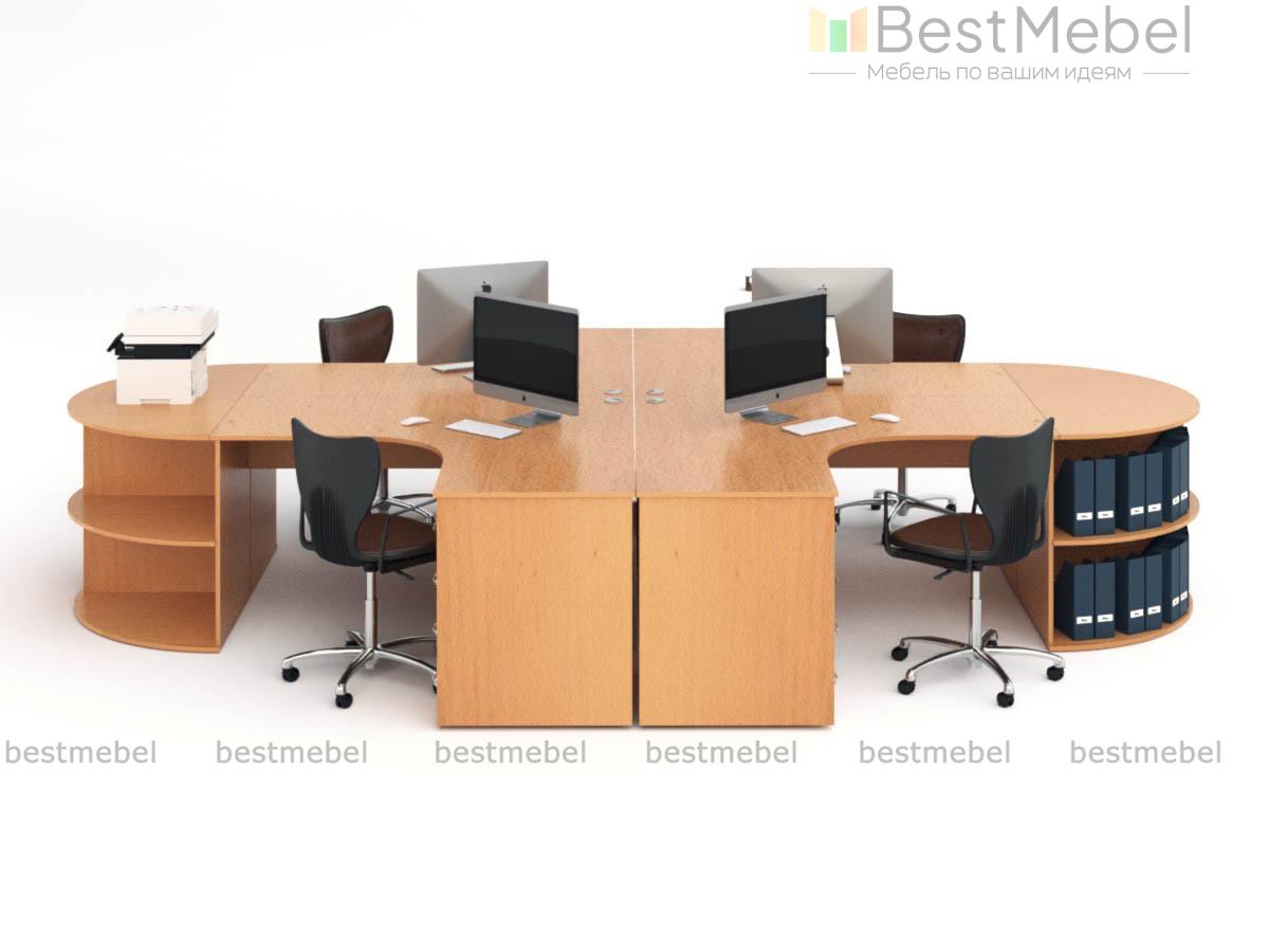 Бенч-система Лора 40 BMS отличается оригинальным эргономичным дизайном и выполнена в теплых древесных тонах, которые создадут комфортную рабочую атмосферу. Композиция объединила четыре угловых компьютерных стола с секциями под системный блок и тумбами с выдвижными ящиками, закрывающимися на ключ. С торца располагаются эффектные радиусные полки для папок с документами. Купить бенч-система Лора 40 BMS для современного офиса открытого типа приглашаем в наш интернет-магазин.