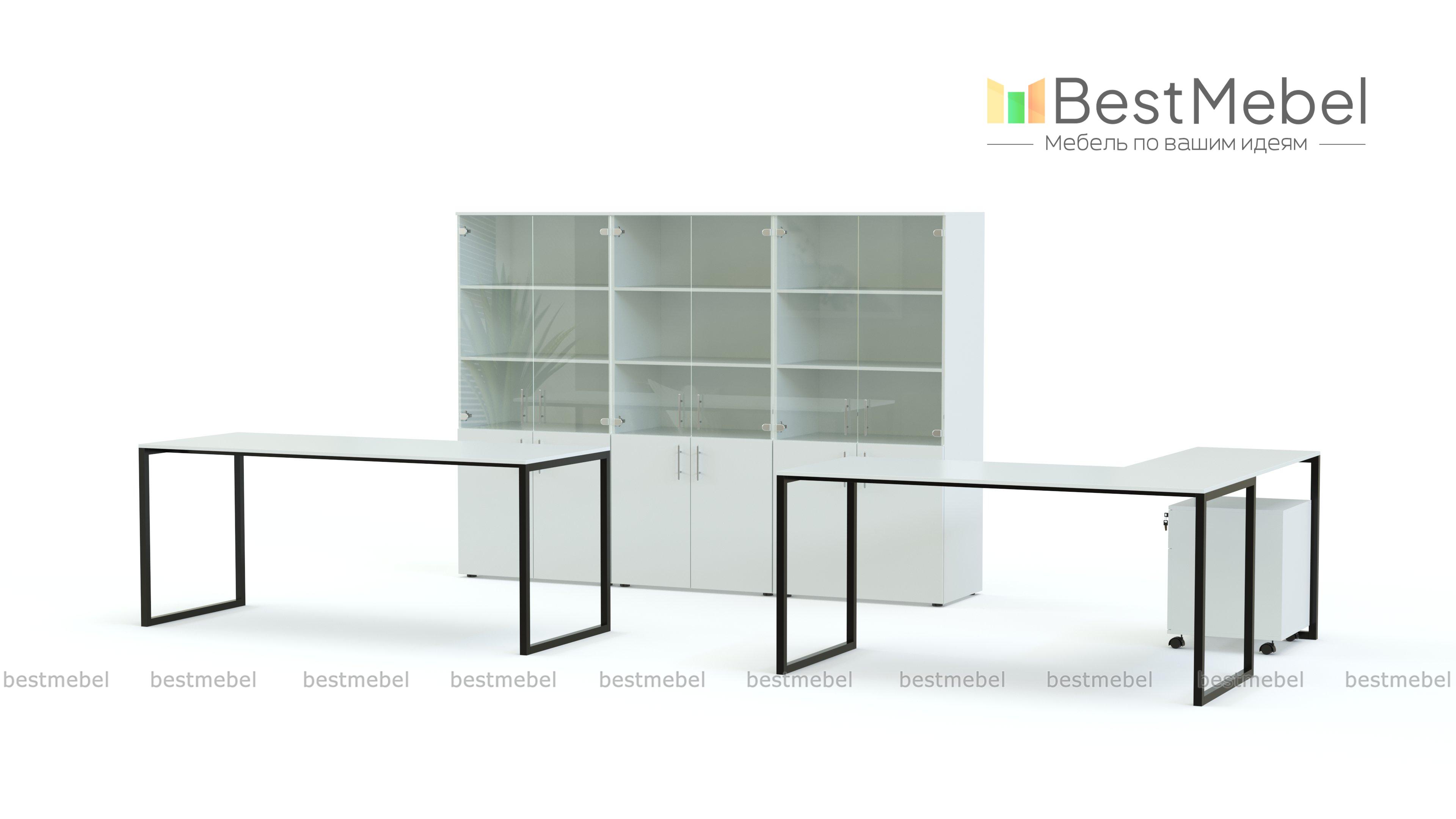 Кабинет руководителя Олимпия 12 BMS, оборудованный сразу двумя столами: прямым и угловым, подходит для работы двух человек. Так же в комплект входят шкафы под документацию с закрытыми и застекленными полками и мобильная тумба с закрывающимся на ключ верхним ящиком. Практичная комбинация выполнена в стилистике лофта из ламинированной плиты природного рисунка и металлического профиля. Купить кабинет руководителя Олимпия 12 BMS вы сможете в нашем интернет-магазине, подобрав цвет и размеры.