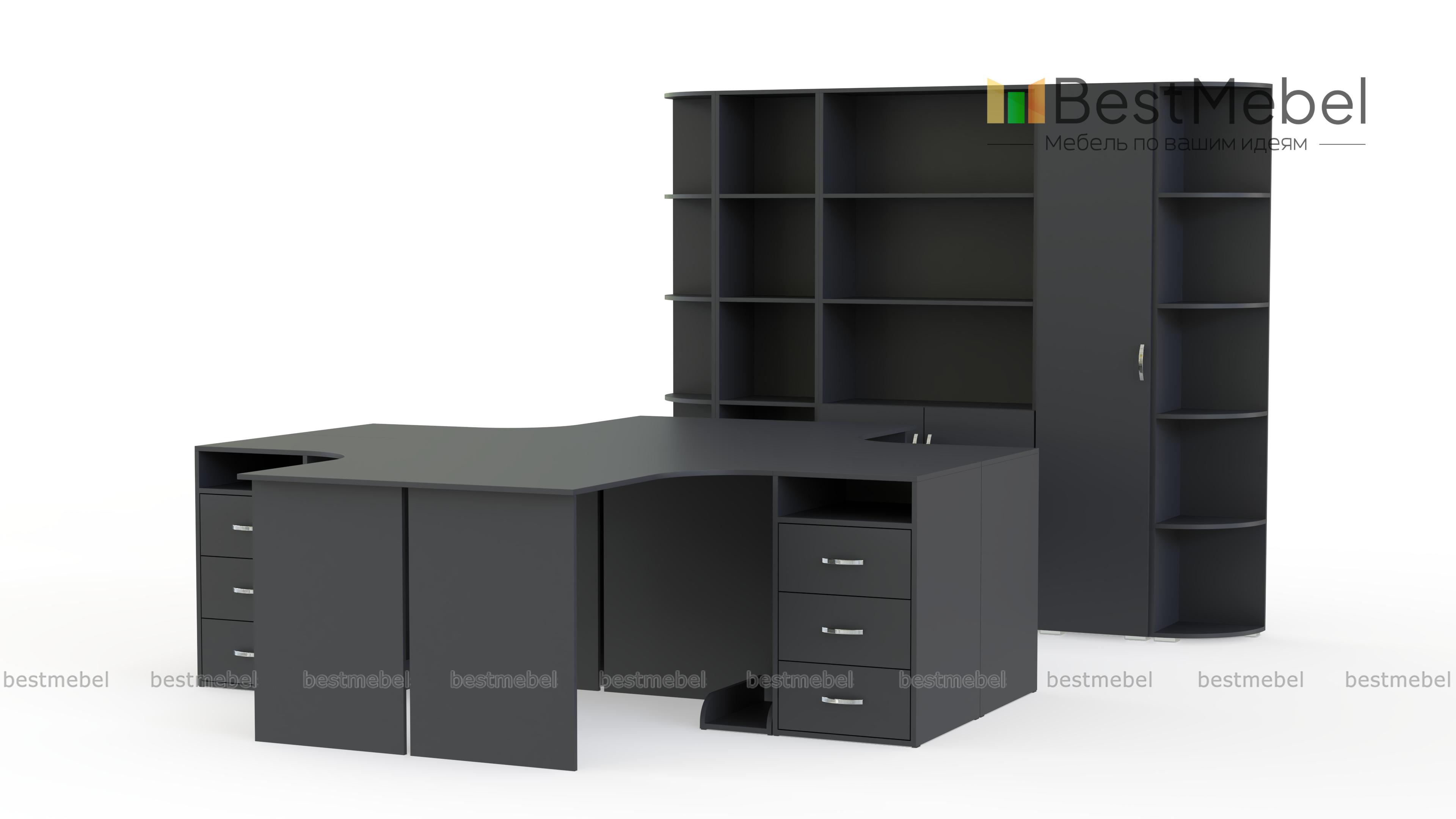 Офисный комплект Uno № 5 BMS представлен четырьмя угловыми компьютерными столами, которые помогут оборудовать рабочий кабинет в едином стиле. Плавный вырез столешницы отвечает требованиям эргономичности, удобное размещение канцелярским принадлежностям и документам обеспечат выдвижные ящики и ниши боковых тумб. Для системного блока предусмотрена подставка. Расположив столы по отдельности или скомбинировав в единую композицию, вы получите не только функциональные, но и стильные варианты интерьера. Купить офисный комплект Uno № 5 BMS вы сможете в нашем интернет-магазине.