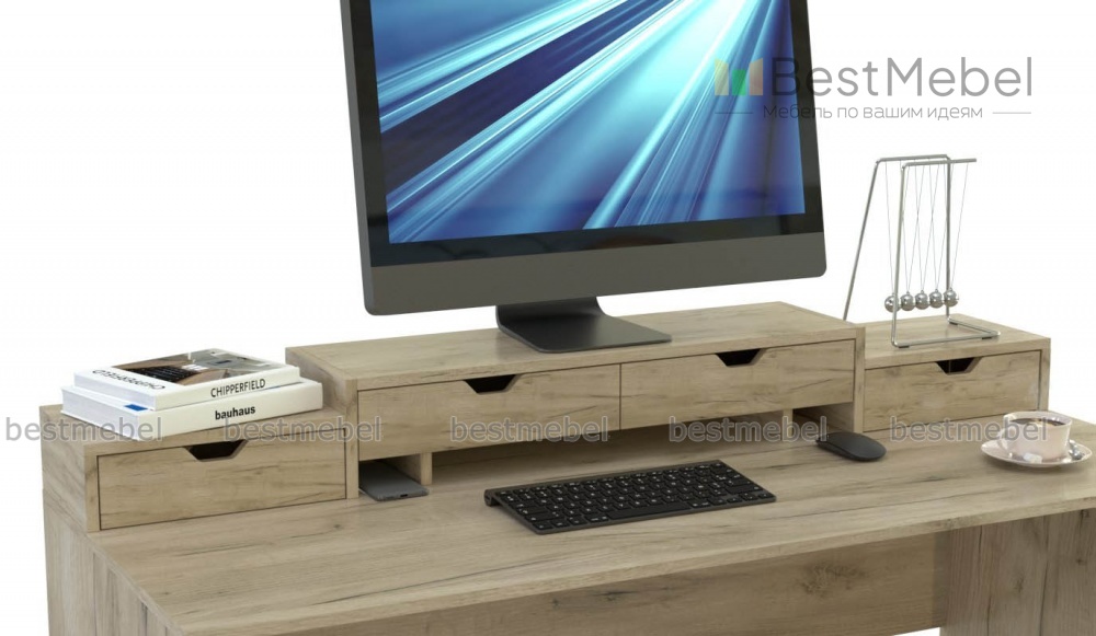 Подставка под монитор Риф-2 BMS – это ступенчатая модель во всю ширину столешницы. Оборудованная четырьмя выдвижными ящиками и разделенной перегородками нишей, модель позволяет значительно расширить функционал рабочего стола. Практичная конструкция подставки дает вам возможность приподнять на удобную высоту монитор, а также разместить книги, гаджеты, канцелярские мелочи и многое другое. Купить подставку под монитор Риф-2 BMS приглашаем в наш интернет-магазин с выбором цвета по каталогу.