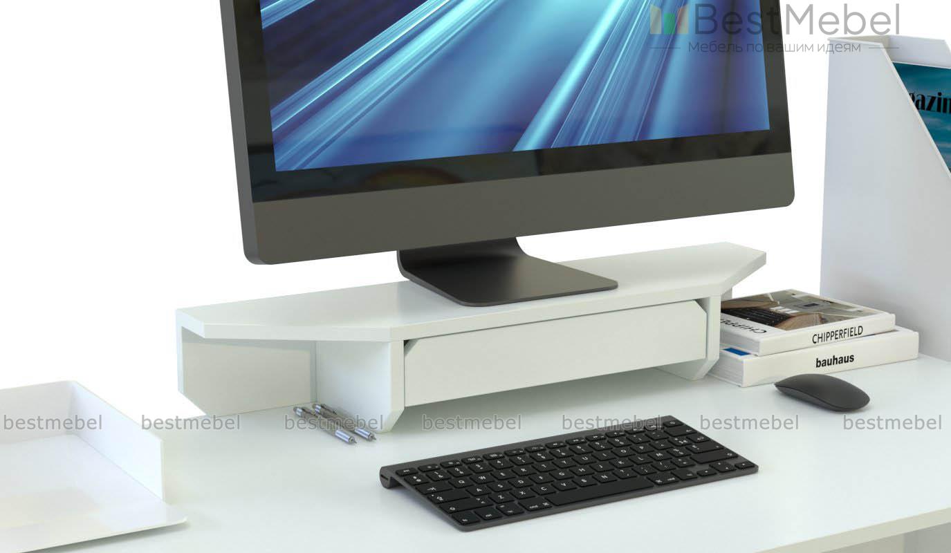Подставка под монитор Сахара-6 BMS поможет вам разместить экран на удобной для глаз высоте и оптимизировать хранение мелочей. Модель с трапециевидной столешницей оборудована широким выдвижным ящиком, нишей и открытыми боковыми отделениями. Ниша под ящиком позволит убрать с рабочей поверхности клавиатуру, когда она не используется. Купить подставку под монитор Сахара-6 BMS вы сможете в нашем интернет-магазине, подобрав гармонирующее с интерьером цветовое решение.