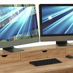 Подставка под монитор Урбан-3 BMS позволяет разместить на удобной для глаз высоте сразу два монитора. Широкая модель, выполненная в крафтовых древесных тонах, имеет настольную конструкцию. Для удобного хранения канцелярских принадлежностей и прочих мелочей подставка оборудована тремя выдвижными ящиками с трапециевидными ручками-вырезами. Купить подставку под монитор Урбан-3 BMS и расширить функционал компьютерного стола вам всегда поможет наш интернет-магазин.