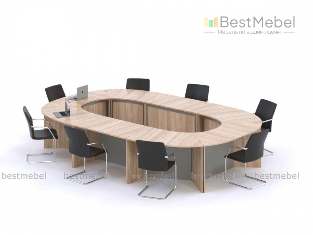 Стол для переговоров Ацтек 2 BMS – стильная имиджевая модель, выполненная в сочетании светлых древесных тонов и платинового. Практичная составная модель включает в себя модули с прямоугольными столешницами и скругленные секции на широких опорах. Овальная форма стола позволит разместить большое количество участников и сделает общение максимально комфортным, а также безопасна за счет отсутствия острых углов. Купить стол для переговоров Ацтек 2 BMS вы сможете в нашем интернет-магазине с учетом оптимальных параметров.