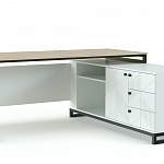 Стол руководителя Эмма 12 BMS имеет современный дизайн и практичную конструкцию, которая обеспечивает свободный доступ к оргтехнике и рабочим материалам. Модель на опорной тумбе отличается просторной рабочей поверхностью и удобной системой хранения из открытой секции с полкой, распашного отделения и трех выдвижных ящиков. Однотонные и древесные поверхности сочетаются с геометрической фрезеровкой и металлом. Купить стол руководителя Эмма 12 BMS для офиса в стиле лофт вы сможете на сайте нашего интернет-магазина.